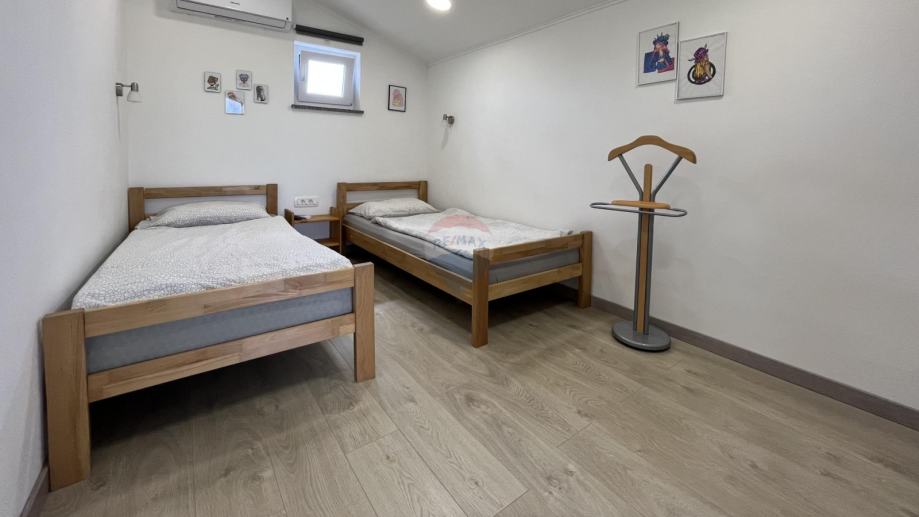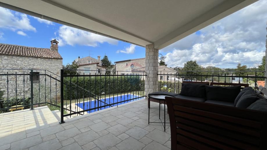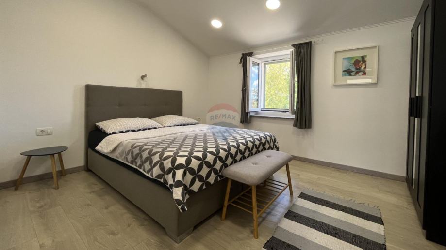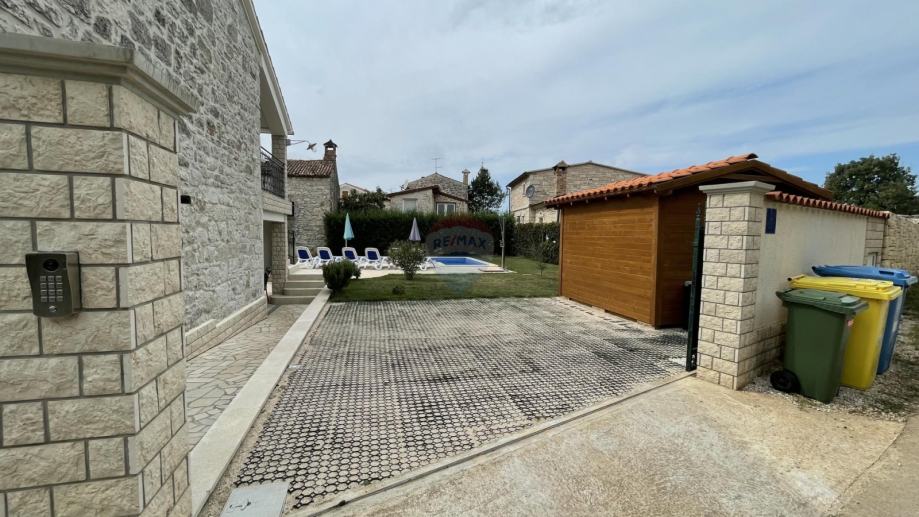Na samo 5 km udaljenosti od grada Poreča i plaža smjestila se ova šarmantna autohtona istarska kamena kuća u potpunosti adaptirana 2018 godine. U prizemlju se nalazi prostrani dnevni boravak, blagovaona, kuhinja koja ima izlaz na natkrivenu terasu i ljetnu kuhinju, spavaća soba i kupaona. Vanjskim se stubištem dolazi na prvi kat u kojem se nalaze još tri spavaće sobe i dvije kupaone sa prostranom i natkrivenom terasom. Svaka prostorija ima klimu inverter, televiziju, komarnike na prozorima i svijetlo po kući koje može biti namješteno kao automatsko svjetlo na senzore. Grijanje je moguće i uz instalaciju peći na pelete ili drva. Kuća je zaštićena alarmom, video nadzorom i sefom, te je na oba dva kata instaliran video parlafon.