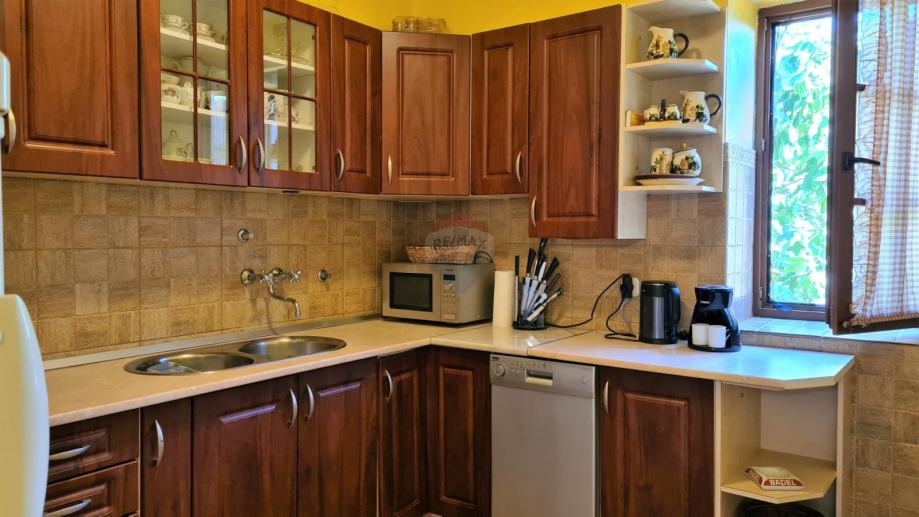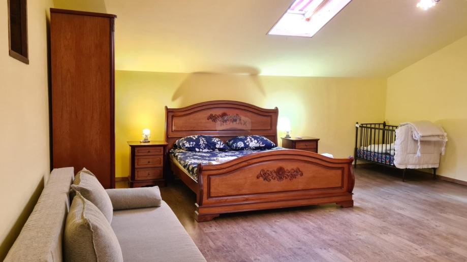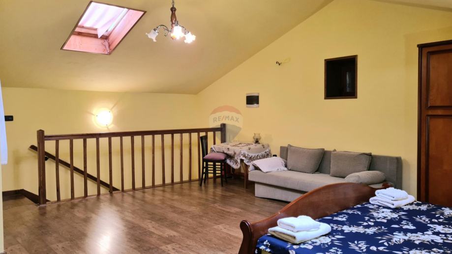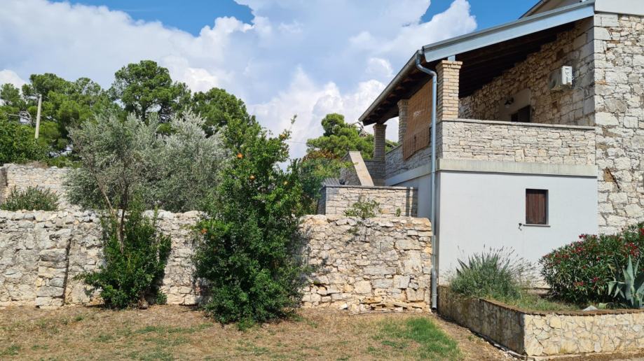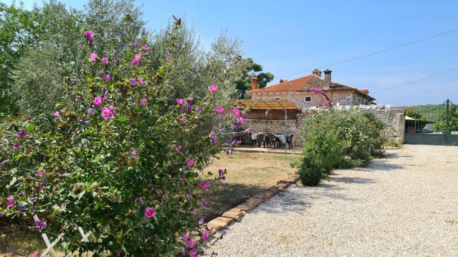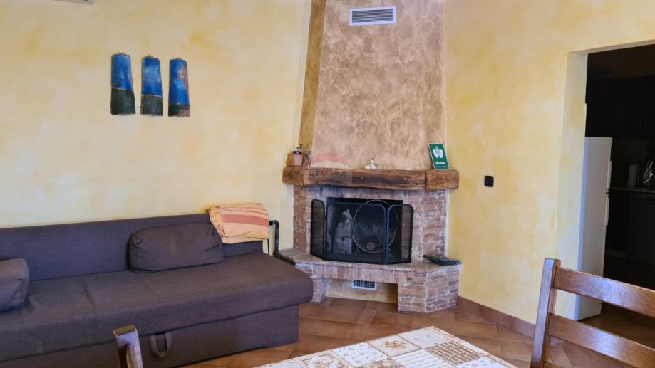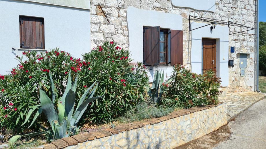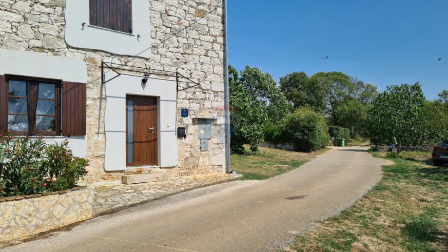 Na samo 4 km od grada Poreča i 2,5 km od mora predstavljamo ovu šarmantnu rekonstruiranu kamenu, istarsku kuću. Ono što posebno plijeni pažnju je vrlo mirno okruženje izuzetno bogate vegetacije. Kuća je smještena na brežuljku malog istarskog mjestašca u kojem je svega nekoliko kuća. Za ljubitelje mirnih lokacija, ovo predstavlja pravi izbor. Kuća je u potpunosti obnovljena 2008. g. vlasnici su se potrudili da se ne izgubi onaj poseban autohtoni domaći štih. Kuća je rubno smještena na parceli od 211 m 2, te u dvorištu ima dovoljno prostora i za izgradnju bazena. U prizemlju se kuće nalazi ulazni hodnik, ostava, gostinjski toalet, kuhinja, dnevni dio s kaminom, velika kupaonica, još jedno predsoblje sa stražnje strane kuće koje vodi u dvorište. Drvenim se stepeništem stiže do 1. kata gdje se nalaze 2 spavaće sobe, kupaonica i velika natkrivena terasa 24 m2, s koje se pružaju vrlo lijepi pogledi prema raskošnom okolnom zelenilu i pokojoj kamenoj okolnoj kući. Do potkrovlja vode još jedne drvene stepenice i tu se duž cijelog prostora smjestila još jedna velika soba od 35 m kojoj pripada i kupaonica na istom katu. Sve naokolo kuće posađeno je mediteransko raslinje koje daje onaj prepoznatljivi domaćinski ugođaj. Kuća se iznajmljuje u ljetnim mjesecima, te se gosti vrlo rado vraćaju svake godine.
