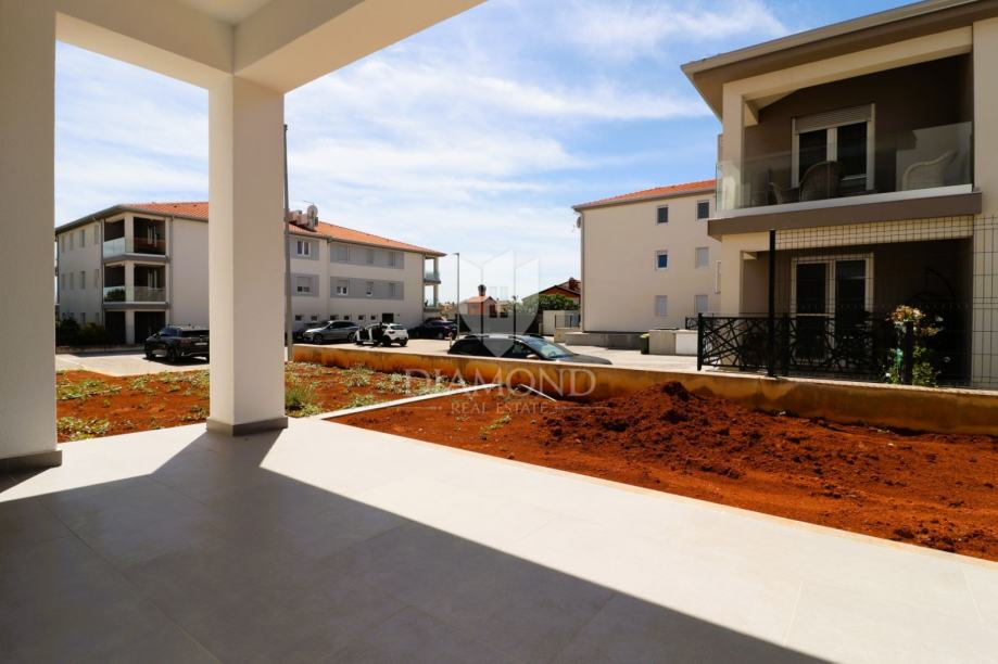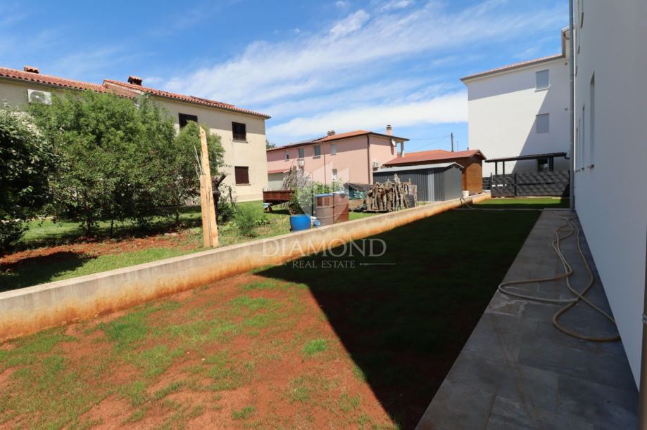 U mirnom mjestu udaljenom svega 7 kilometara od grada Poreča i uređenih plaža, smještena je moderna stambena zgrada s ukupno devet stanova. U prizemlju zgrade nalazi se prostran i funkcionalno raspoređen stan koji nudi udobnost i praktičnost, čineći ga idealnim izborom za obiteljski život ili dugoročnu investiciju u najam.