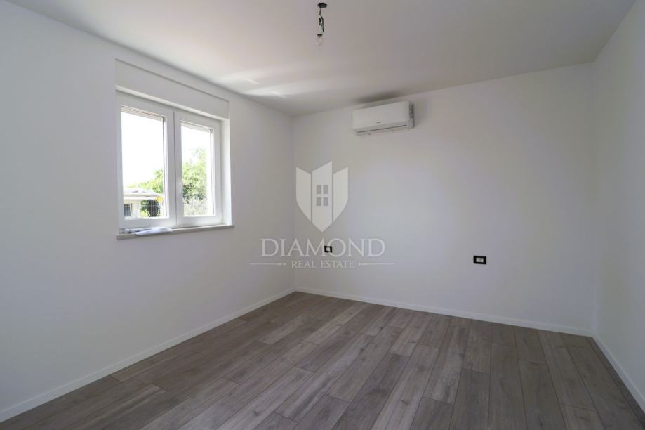 U mirnom mjestu udaljenom svega 7 kilometara od grada Poreča i uređenih plaža, smještena je moderna stambena zgrada s ukupno devet stanova. Na prvom katu zgrade nalazi se prostran i funkcionalno raspoređen stan koji nudi udobnost i praktičnost, čineći ga idealnim izborom za obiteljski život ili dugoročnu investiciju u najam.