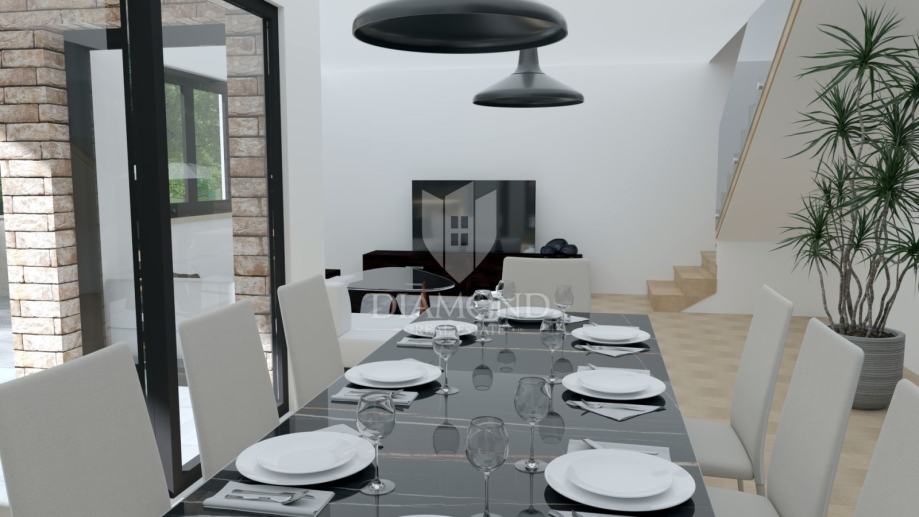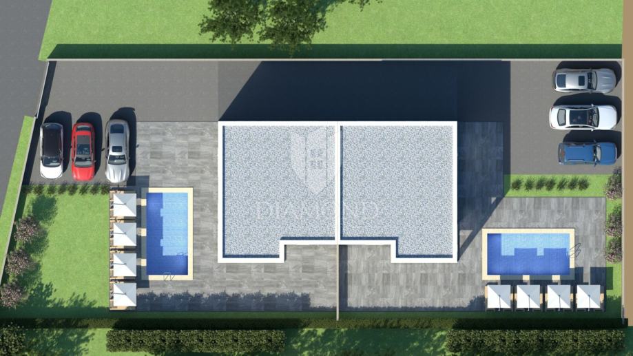 U mirnom mjestu na rubu naselja između Poreča i Vrsar smjestila se ova dvojna kuća. Njezina ukupna veličina je 170 m2 te prostire na dvije etaže.