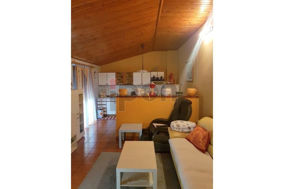 Prizemlje kuće se sastoji od konobe sa kaminom, kuhinje i blagovaonice, kupatila i spavaće sobe sa ogromnom terasom od 32 m2