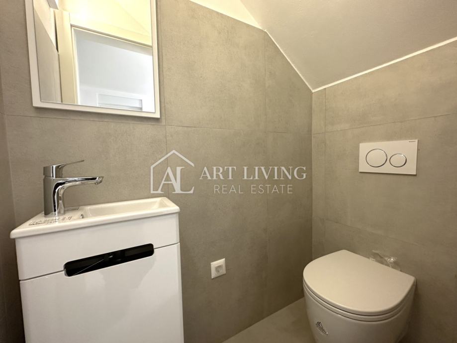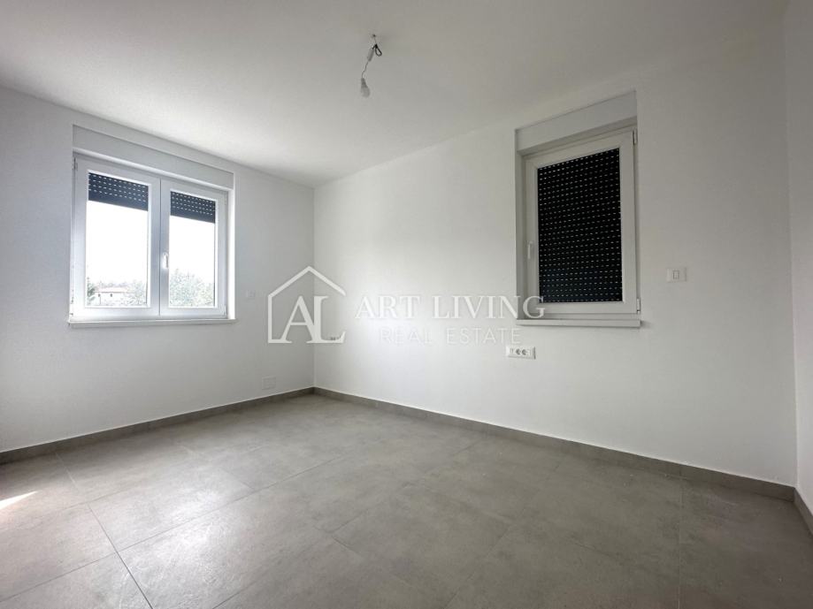 Stan karakterizira vlastiti zaseban ulaz, funkcionalan raspored prostorija i obilje prirodnog svjetla. Donju etažu stana čini prostrani dnevni boravak s kuhinjom i blagovaonicom, zatim wc te prostrana natkrivena terasa/loggia sa koje se pruža lijep pogled na istarski krajolik. Unutarnjim stubištem penjemo se na gornju etažu stana gdje se nalaze dvije udobne spavaće sobe te kupaona.