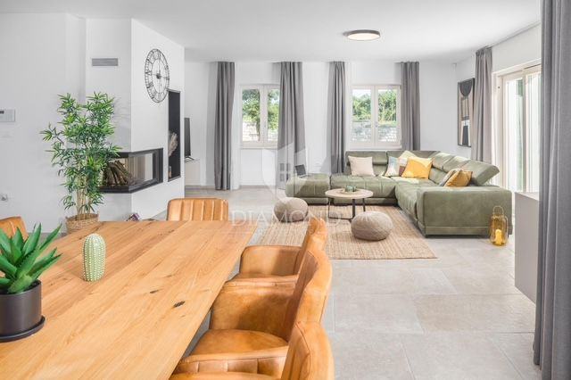 Interijer kuće odiše profinjenošću i toplinom, pružajući osjećaj doma s dodatkom luksuza na svakom koraku. Kuća je redovito održavana i grijana tijekom zimskih mjeseci te pruža mogućnost podnog grijanja i savršeno regulirane klime kao i modernim sustavima grijanja i hlađenja - fan coil.