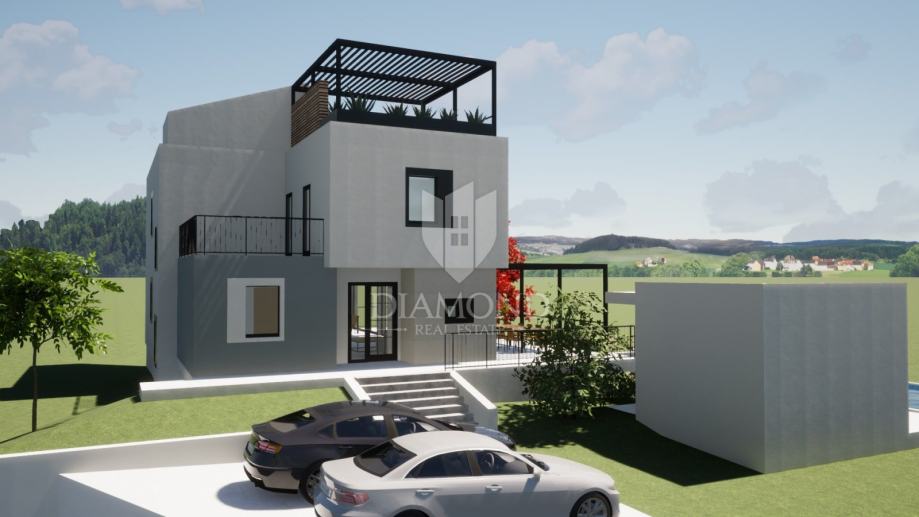 U predgrađu grada Poreča na zemljištu od ukupno 958 m2 smjestit će se ova impozantna vila sa prekrasnim pogledom na more.