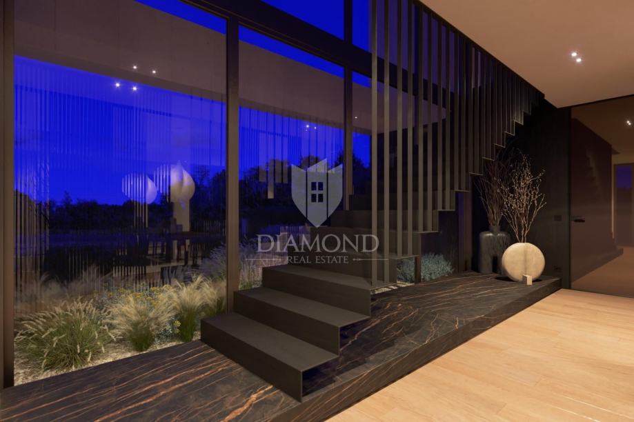 Vila se odlikuje visokokvalitetnim materijalima, modernim dizajnom obogaćenim jedinstvenim dizajnerskim rješenjima. Grijanje i hlađenje je omogućeno putem dizalice topline, što osigurava ugodan boravak tijekom cijele godine. Velike staklene površine pružaju obilje prirodne svjetlosti i povezanost s vanjskim prostorom, dok infinity bazen s prozirnim staklenim zidom stvara jedinstven vizualni doživljaj.