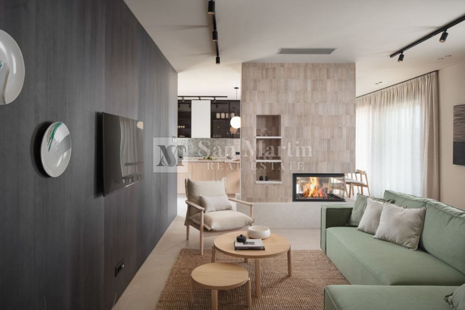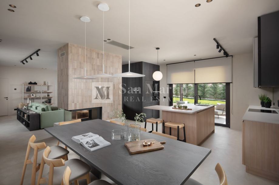 Kuća ima podno grijanje s toplinskom pumpom i sustav hlađenja. Vrhunska oprema i namještaj.