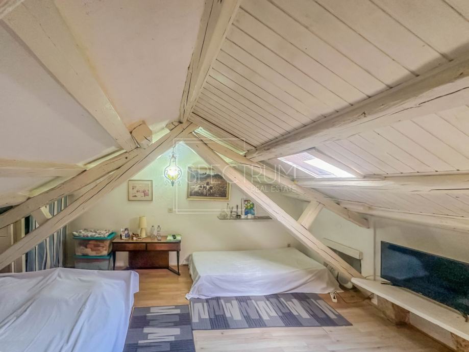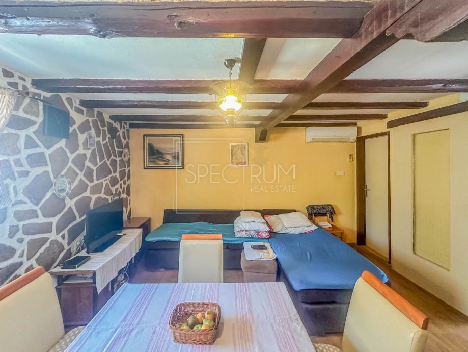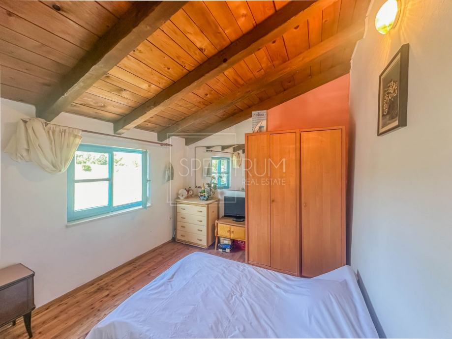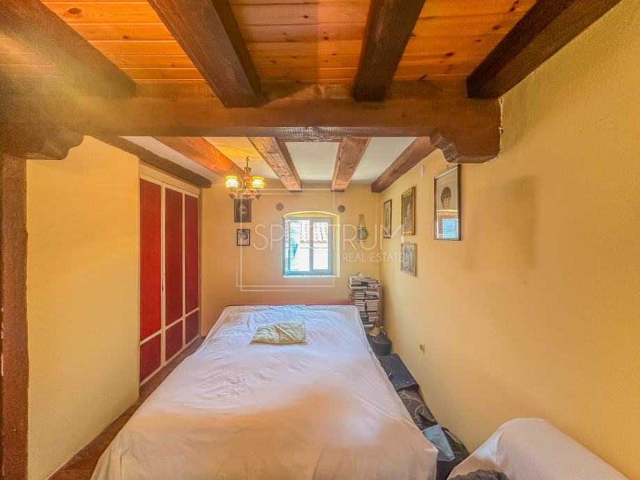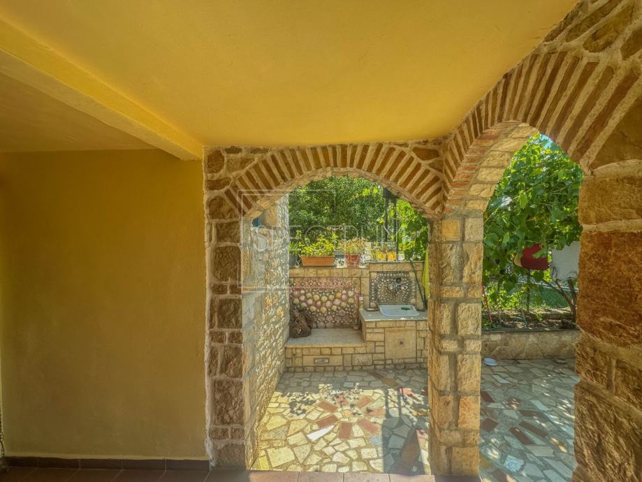 Kuća se proteže kroz prizemlje, 1.kat i potkrovlje, a površina kuće iznosi 104.87 m2. U prizemlju se nalazi ulazni hodnik, dnevni boravak sa kuhinjom i blagovaonicom te kupaonica. Iz prizemlja se izlazi na natkrivenu terasu, idealnu za druženje na otvorenome. Unutarnjim stepenicama se dolazi do 1.kata gdje se nalaze 2 spavaće sobe i wc. U potkrovlju se nalazi još jedna spavaća soba. Iz kuće se pruža pogled na prirodu. Kuća se grije putem klima uređaja. Kuću karakteriziraju autohtoni kameni istarski zidovi. Ispred kuće se nalazi i dvorište površine 20 m2. Pored kuće se nalazi i javni prostor za parking.
