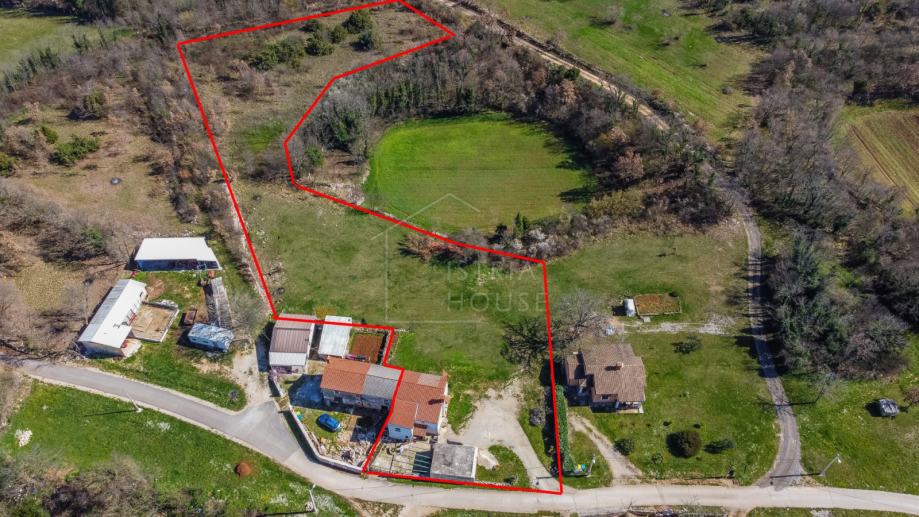 Prodaje se renovirana kamena kuća u malenom istarskom selu s velikom okućnicom. Kuća je dvojna i nalazi se u mirnom mjestu okružena prirodom. Kuća ima ukupno 200m2 od čega glavni objekt ima 160m2 koji se proteže na prizemlje i kat te pomoćni objekt od 40 m2. U prizemlju se nalazi dnevni boravak s kuhinjom, kupatilo te ostava, dok na katu se nalaze tri spavaće sobe. Kuća je kompletno renovirana 2016. godine. Od ukupnog dvorišta 900m2 je građevinsko zemljište, a ostatak poljoprivredno zemljište. Svi najbliži sadržaji se nalaze na 10 minuta vožnje autom.