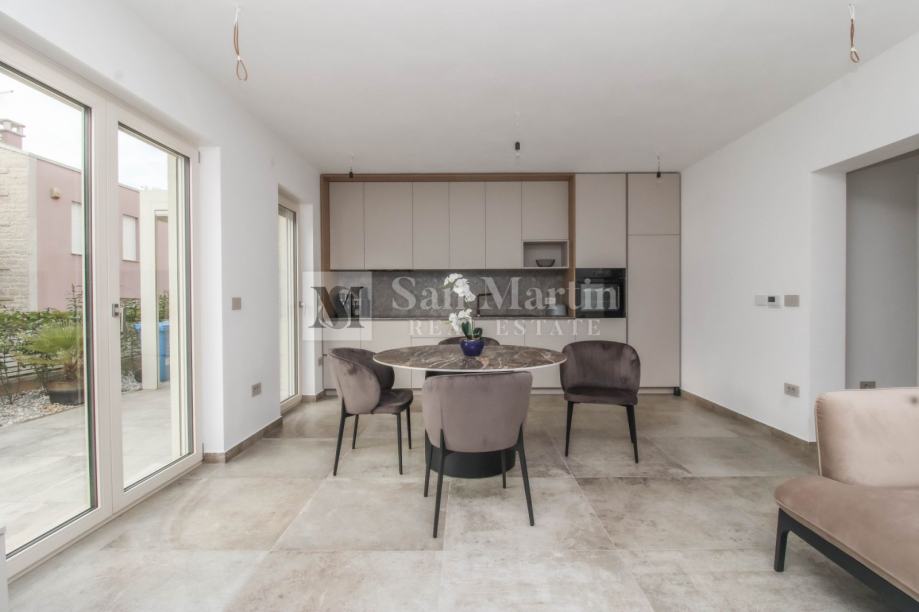 Nedaleko od grada Poreča par minuta hoda do prekrasnih plaža prodaje se ova moderno opremljena kuća. Iako u nizu okružena je luksuznim objektima lijepo održavanih okućnica što sigurno doprinosi osjećaju otmjenosti.
