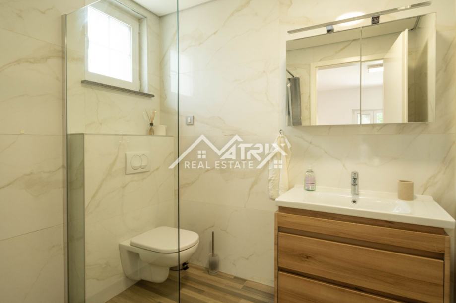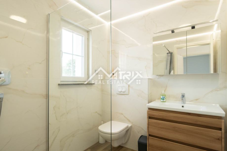 Također u prizemlju, smještena je jedna spavaća soba s vlastitom kupaonicom, ulazni hodnik te dodatni toalet za goste.