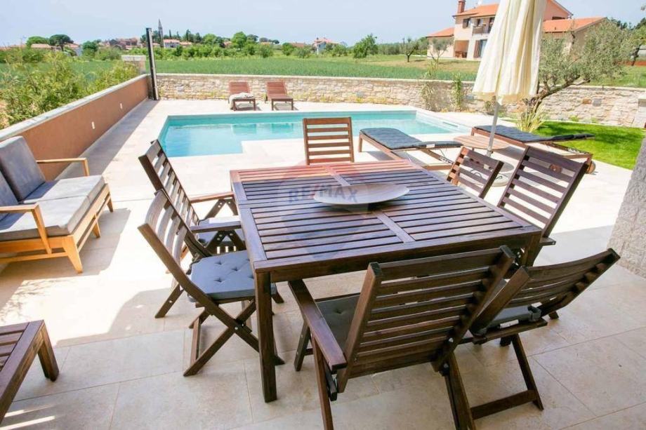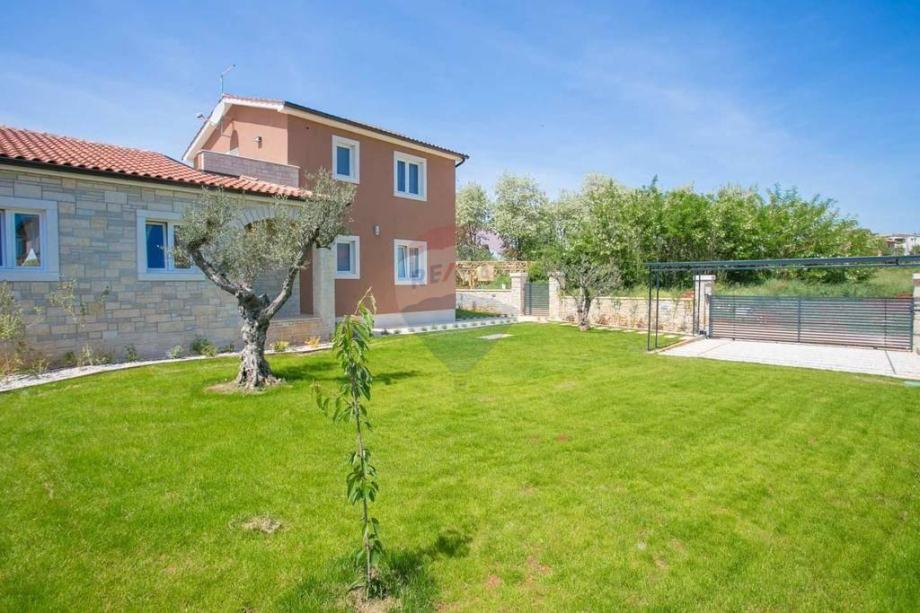 U okolici Poreča, devet kilometara od mora, prodaje se ova lijepa kuća izgrađena 2015. godine. Površina kuće je 155 m2 i prostire se na dvije etaže.