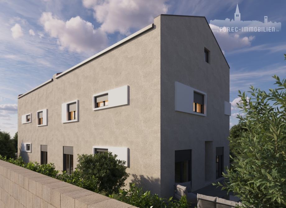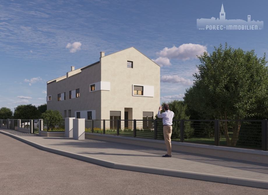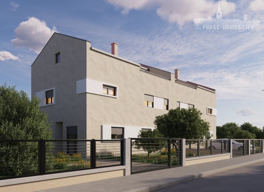 Na prodaji je krajnja kuća u nizu u izgradnji, na samo 4 kilometara udaljenosti od grada Poreča i 5 kilometara od mora.