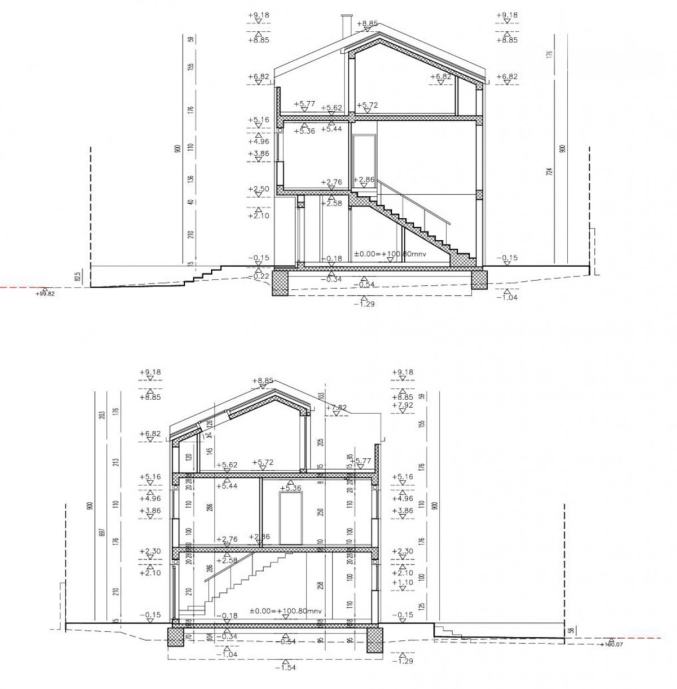 Na prvom katu se nalazi spavaća soba sa garderobom i kupaonicom, a u potkrovlju se nalazi još jedna velika spavaća soba, kupaonica, spremište i nenatkrivena terasa.