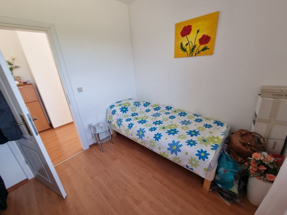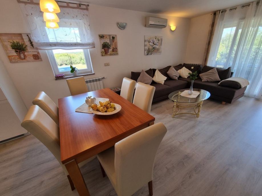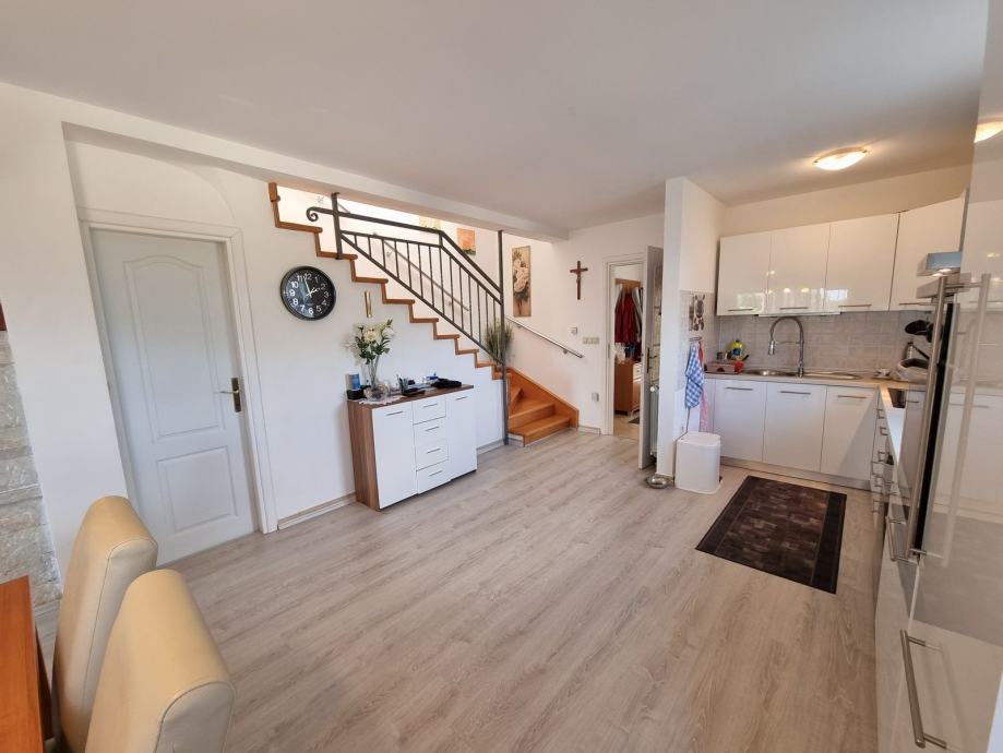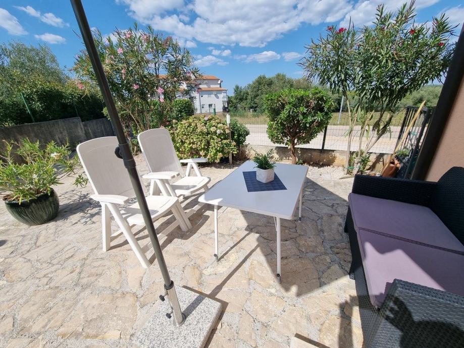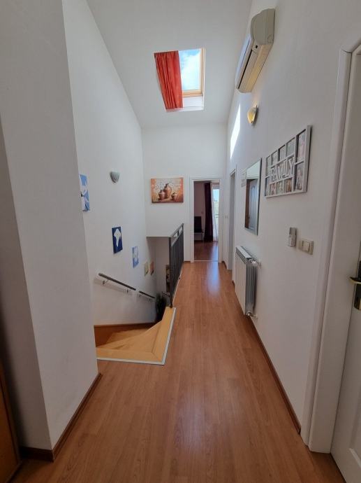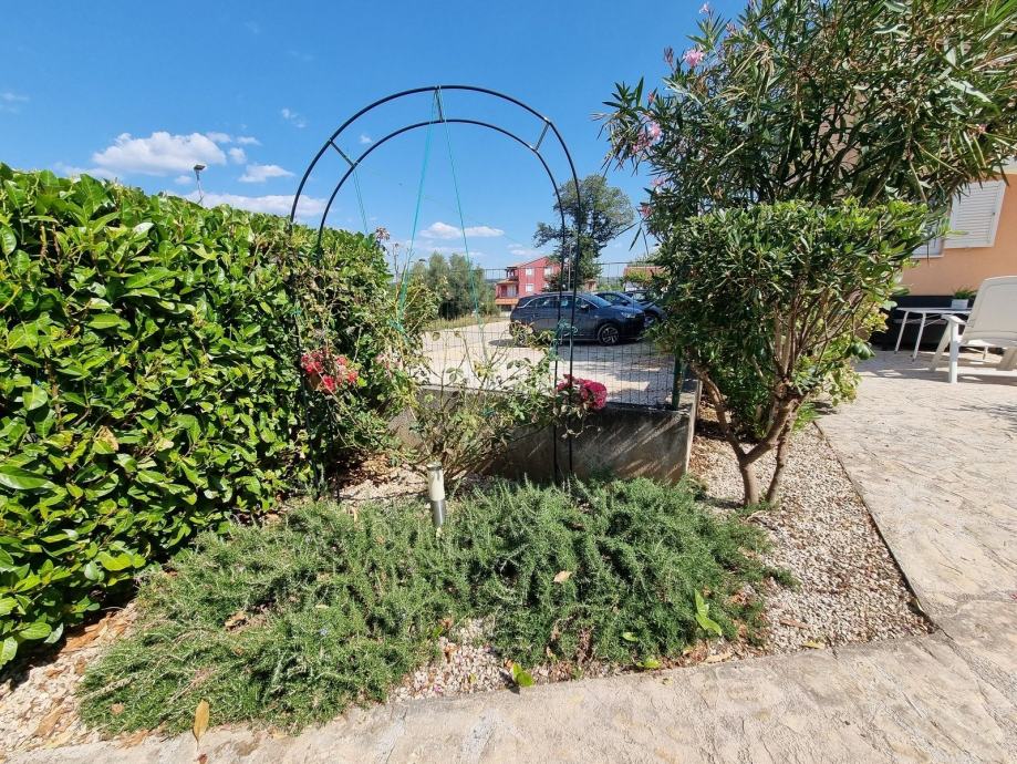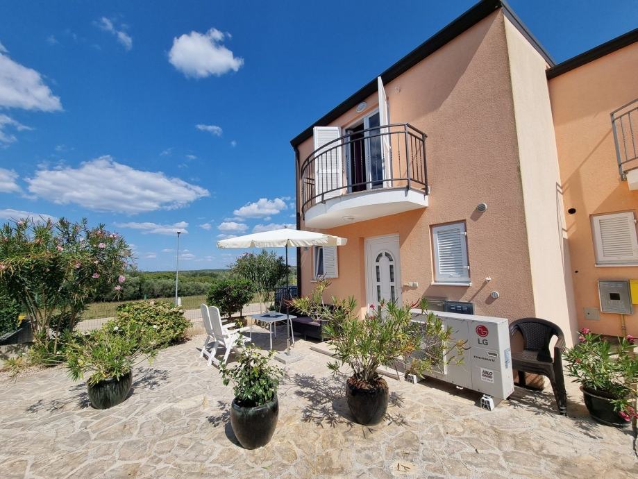 Nedaleko Poreča i mora prodaje se kuća prva u nizu od 105,75 m2 sa vlastitom okućnicom od 290 m2. Građena je 2008. godine. Sastoji se od prizemlja i kata. U prizemlju se nalazi hodnik, wc+praona, tehnička soba, ostatak prostorije prizemlja je jedan veliki prostor u kojemu je kuhinja, blagovaona i dnevni boravak sa kaminom, spremište. Iz dnevnog boravka se izlazi na terasu i u vrt. Na katu se nalaze tri spavaće sobe, dvije sa vlastitim balkonom, te velika kupaona sa tušem. U kući je provedeno centralno grijanje na struju, i na svakom katu je po jedna klimatska jedinica. Kuća je vrlo dobro očuvana, prodaje se kompletno sa namještajem i opremom. Stanu pripadaju i 2 parkirna mjesta.
