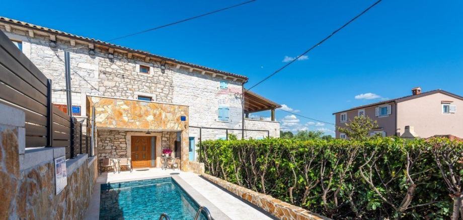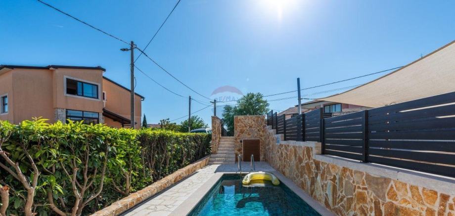 Kuća se nalazi na lijepom mjestu i na samo par minuta od centra Poreča. Vanjski dio nekretnine sastoji se od bazena, mjesta za roštilj i druženje, a unutarnji dio od dnevnog boravka, blagovaone, kuhinje i wca. Po stepenicama se dolazi do gornjeg kata na kojem se nalaze dvije spavaće sobe i kupatilo.