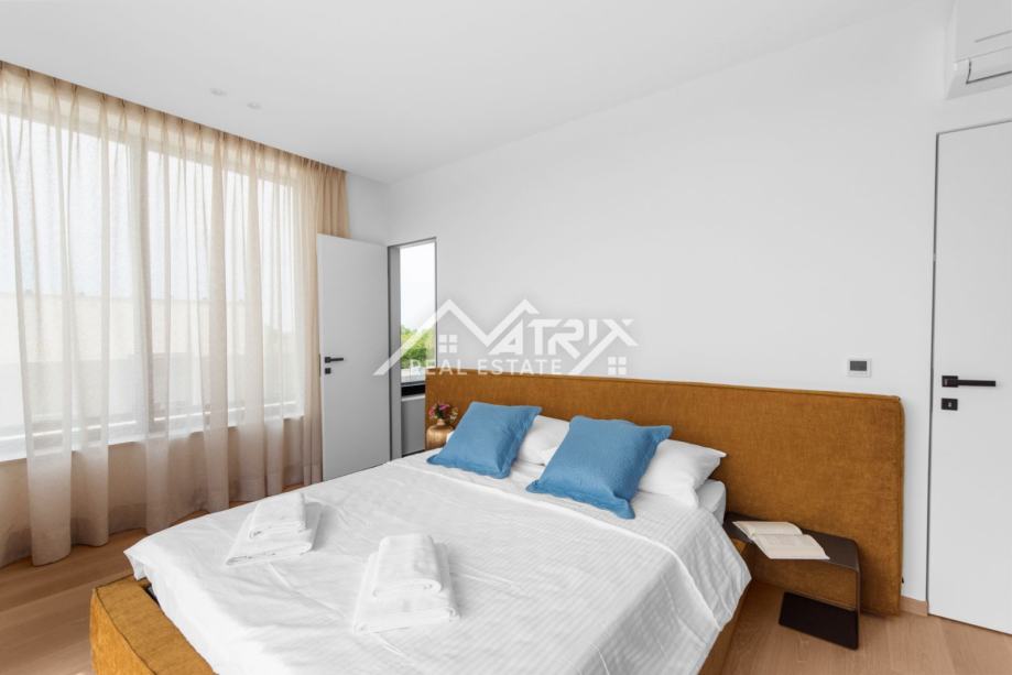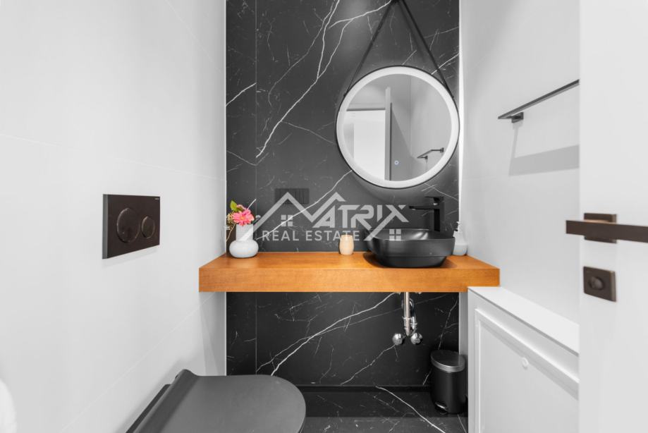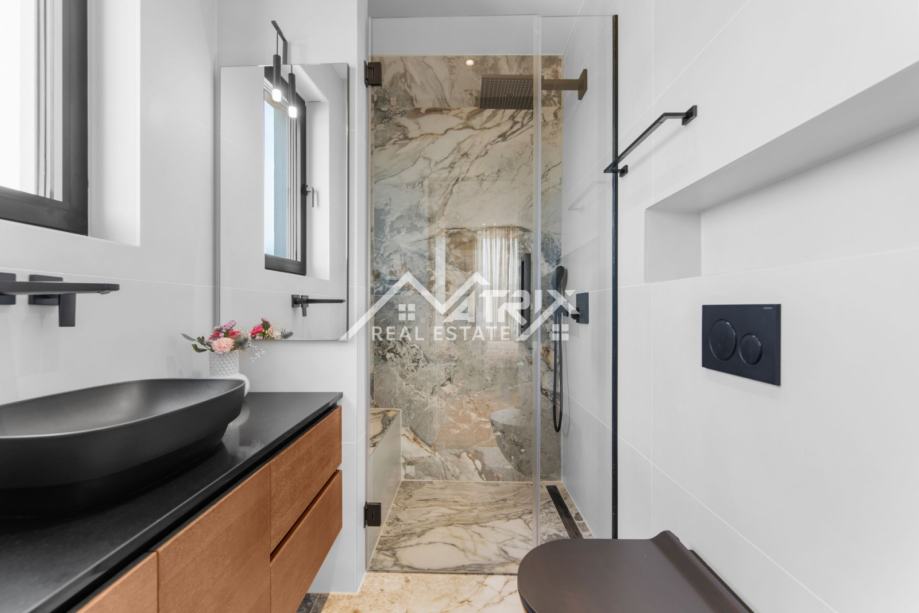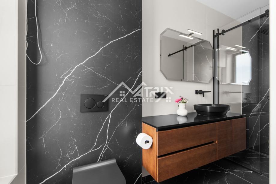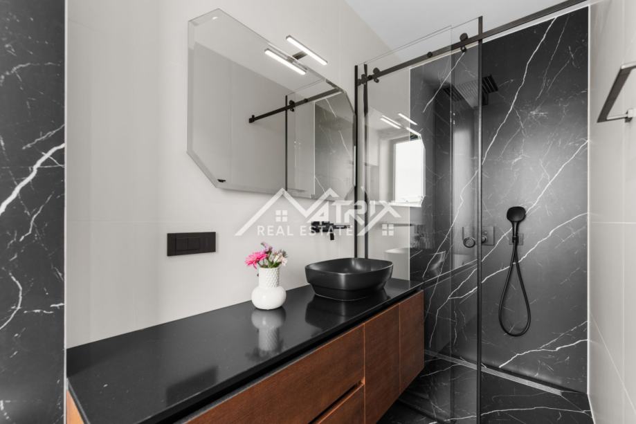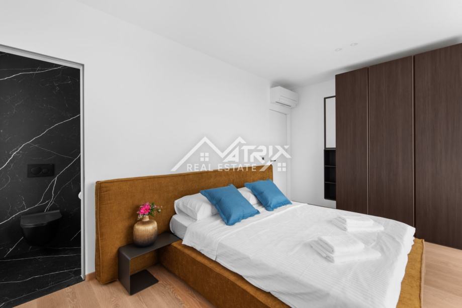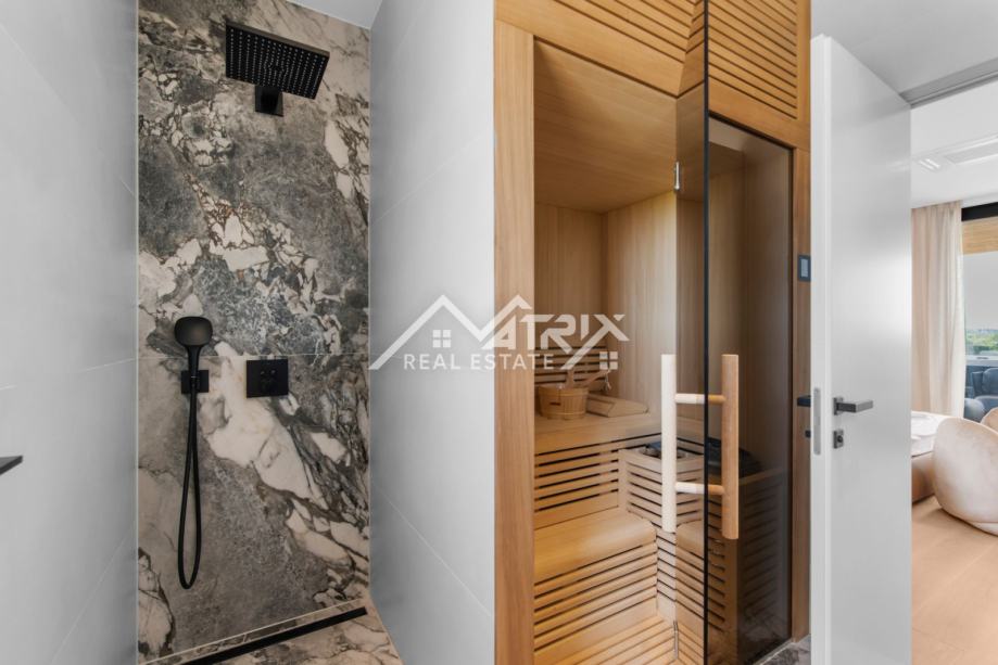 Penthouse nudi tri prostrane spavaće sobe, svaka s vlastitom kupaonicom, dodatni gostinjski WC te prozračni open space koncept dnevnog boravka i kuhinje. Udobnost je podignuta na najvišu razinu zahvaljujući podnom grijanju upravljivom putem mobilne aplikacije, dok Mitsubishi sustav grijanja i hlađenja osigurava optimalnu temperaturu tijekom cijele godine.