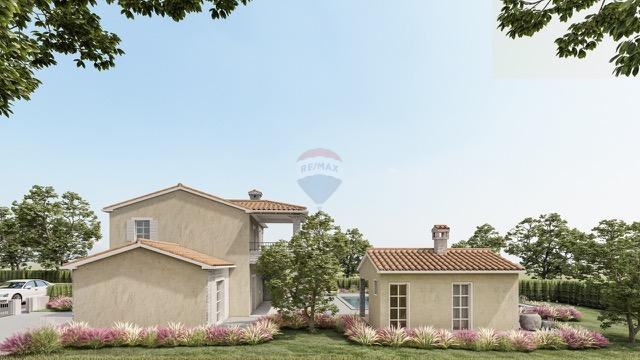Ova moderna vila prostire se na dvije etaže, pružajući savršenu funkcionalnost i udobnost. Sastoji se od prostrane otvorene kuhinje, blagovaonice i dnevnog boravka, četiri luksuzno uređene spavaće sobe, četiri kupaonice, gostinjskog toaleta i dodatne ostave. Prostrana okućnica bogata je mediteranskim biljem, a posebno ju upotpunjuju pomoćni objekt s ljetnom kuhinjom, spremištem i toaletom, kao i bazen površine 66 m² sa sunčalištem.