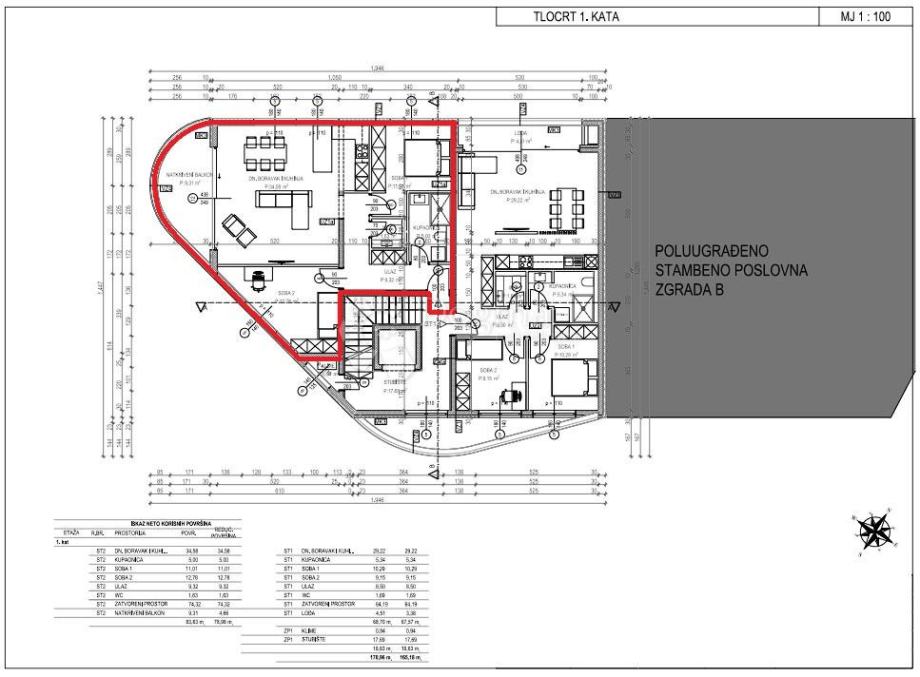 Stan površine 78,98 m² pažljivo je osmišljen kako bi pružio maksimalnu udobnost i funkcionalnost. Sastoji se od dvije spavaće sobe, prostranog dnevnog boravka, kuhinje s blagovaonicom, kupaonice, dodatnog WC-a i natkrivene terase/lođe. Zahvaljujući promišljenom rasporedu i modernom dizajnu, idealan je za obiteljski život, odmor ili kao investicija za turistički najam.