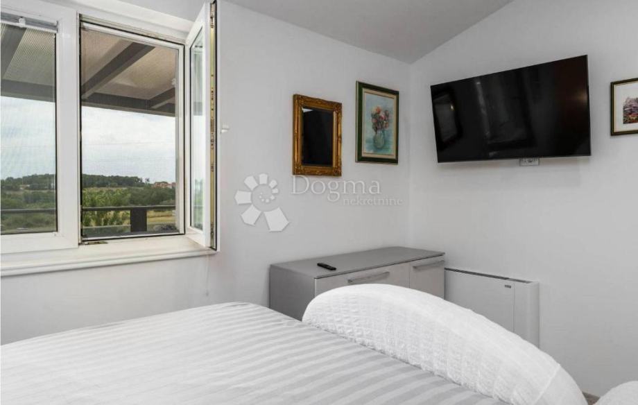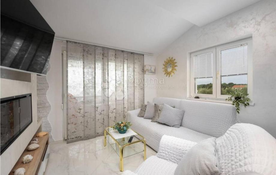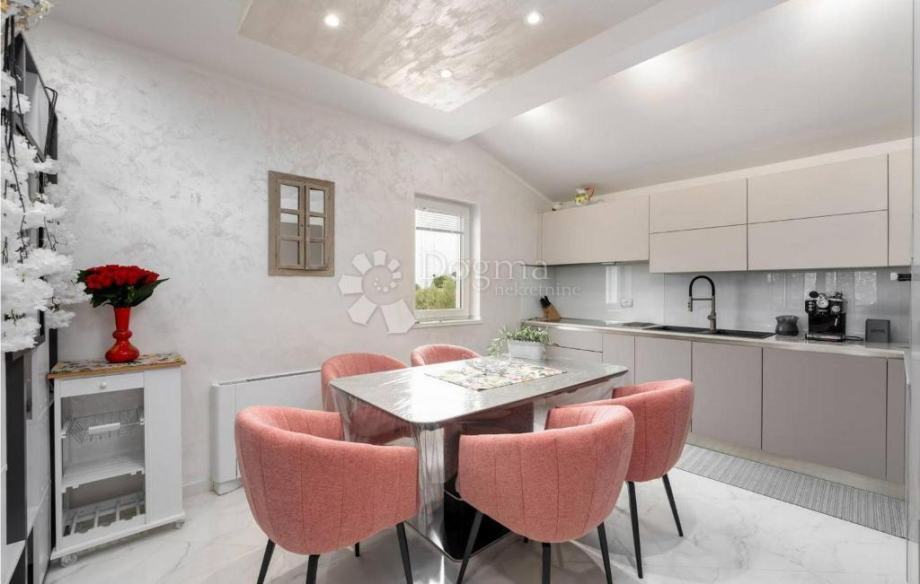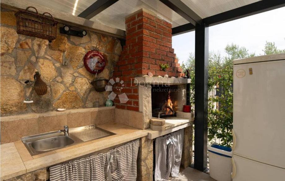 Ova kuća površine 115 m² sastoji se od dvije spavaće sobe, dva kupaonice, kuhinje, blagovaonice, dnevnog boravka te prostrane terase s prekrasnim pogledom na more. Dodatni prostor u podrumu trenutačno služi kao spremište, no nudi mogućnost adaptacije prema potrebama novog vlasnika – primjerice dodatna spavaća soba s kupaonicom, prostor za druženje, vinoteka ili studio apartman.