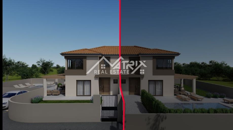 Prodaje se moderna dvojna kuća površine 137,5 m², smještena u mirnom mjestu samo 10 km od Poreča. Ovo područje nudi sve sadržaje potrebne za svakodnevni život, uz mogućnost ugodnih šetnji kroz prirodu i pašnjake, što čini lokaciju savršenom za obiteljski život i opuštanje.