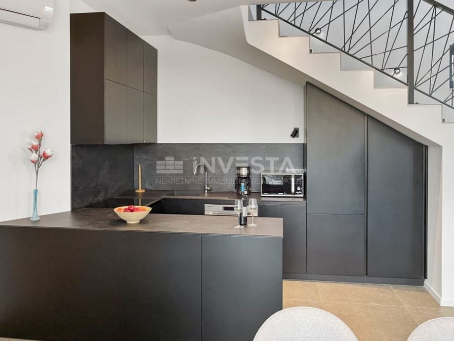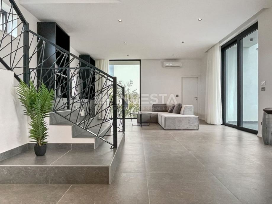 U prizemlju se smjestio prostrani dnevni boravak sa izlazom na terasu, kuhinja i blagovaonica po open space konceptu, jedna spavaća soba sa kupaonicom te izlazom u zonu vrta. Također se u prizemlju smjestila natkrivena ljetna kuhinja sa toaletom, bazen površine 50 m² sa sunčalištem, wellness sa saunom te praonicom. Unutarnjim stubištem dolazimo na kat gdje su se smjestile tri spavaće sobe, svaka sa svojom kupaonicom, dok jedna soba ima izlaz na terasu gdje je smješten jacuzzi te se pruža predivan pogled na morsko plavetnilo.