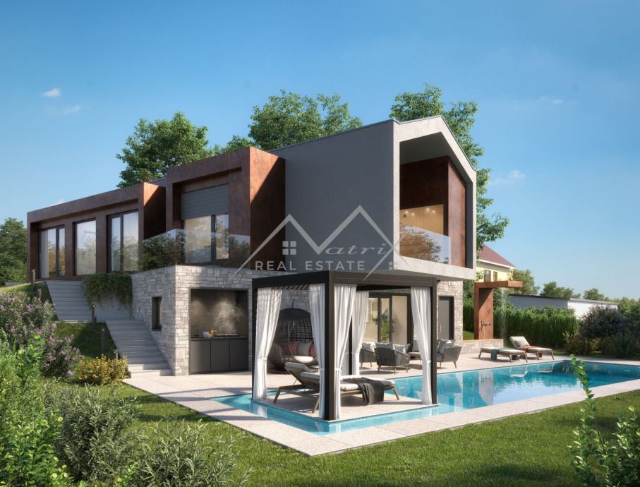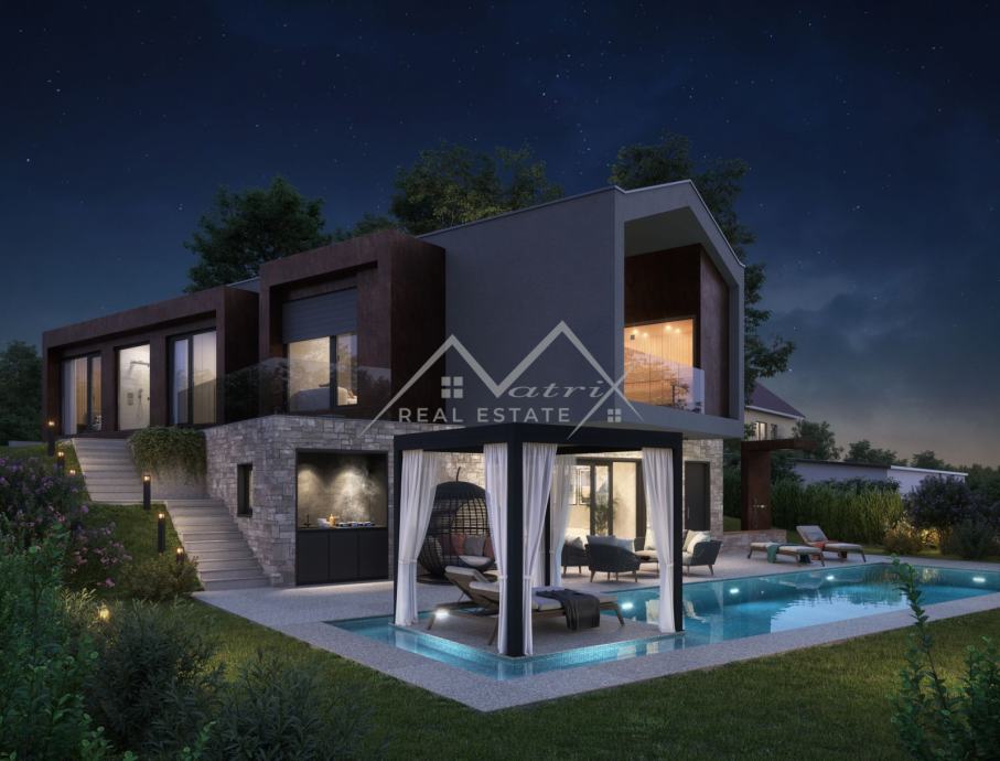 Poreč okolica, Moderna vila s bazenom i pogledom na more! (prodaja)