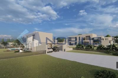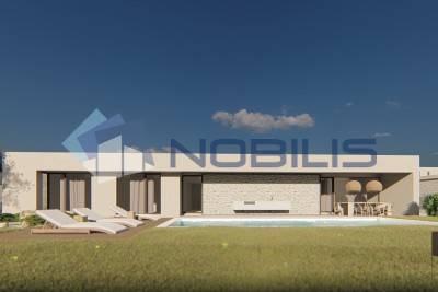 Nudimo prekrasnu modernu vilu u blizini Poreča u izgradnji. Vila površine 194,15 m2 imat će u prizemlju kuhinju s blagovaonicom i dnevnim boravkom, 1 wc, 1 kupaonicu, 1 spavaću sobu, ostavu i natkrivenu terasu, na katu su tri spavaće sobe, svaka s vlastitom kupaonicom. Također, jedna soba će imati izlaz na terasu.