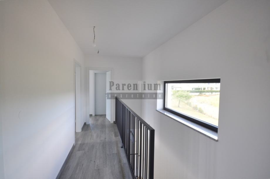 Kuća je ukupne površine 190 m2 i proteže se na dvije etaže. U prizemlju se nalazi prostrani dnevni boravak sa kuhinjom i blagovaonicom , predsoblje i wc. Veliki prozori spajaju interijer i eksterijer, pa se tako iz dnevnog boravka se izlazi na natkrivenu terasu s koje se pristupa na uređenu okućnicu površine 942 m2 i bazen sa sunčalištem. Da bi travnjak uvijek bio zelen i lijep proveden je sustav navodnjavanja, a živa ograda obuhvaća cijelu okućnicu. Također su provedene instalacije za vodu i struju do velikog drva hrasta kako bi se mogla izgraditi ljetna kuhinja u prirodnom hladu. Katu se pristupa unutarnjim stepeništem na kojem se nalazi master spavaća soba sa zasebnom kupaonicom i prekrasnom otvorenom terasom. Na katu su još dvije prostrane spavaće sobe koje su povezane terasom te još jedna lijepa kupaonica. U svakoj sobi nalazi se klima uređaj, a u dnevnom boravku je moguće dodatno ugraditi kamin. Postavljena je prva faza podnog grijanja i instalacija za solarno grijanje na krovu kako bi u budućnosti mogli imati dodatni sustav grijanja niske energetske potrošnje. Kuća je nenamještena što omogućava novim vlasnicima opremanje prema vlastitim željama. Nalazi se na samo nekoliko minuta vožnje od Poreča u mirnom mjestu na samom rubu šume i lijepe autohtone istarske prirode. U blizini su razni adventure i turistički sadržaji, kvalitetni restorani, kafići, šetnice, biciklističke staze u prirodi, trgovine i ostali potrebni sadržaji.