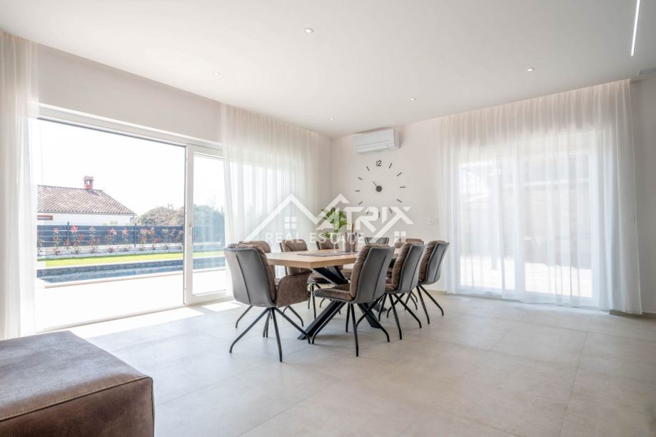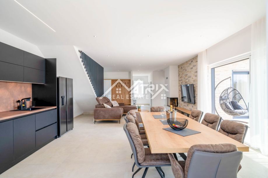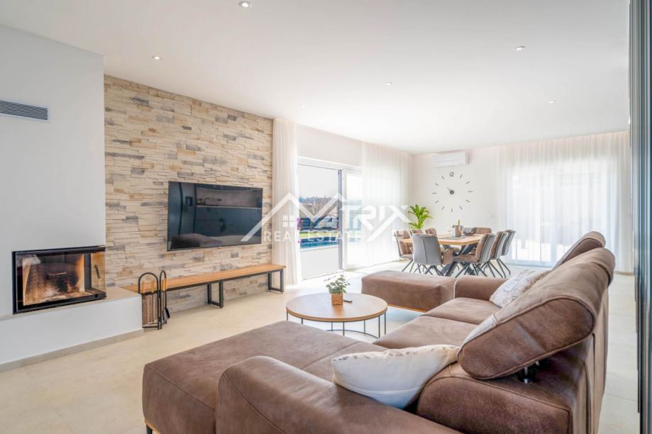 Vanjski prostor ove vile očarava grijani bazen, sunčalište i prekrasna natkrivena ljetna kuhinja, idealna za opuštanje i uživanje u toplim ljetnim danima.