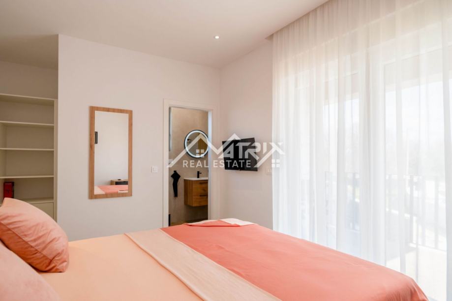 Ova izvanredna vila predstavlja idealnu priliku za iznajmljivanje tijekom ljetne sezone, uz sve potrebne sadržaje kao što su trgovina, kafić, restoran, škola i vrtić u neposrednoj blizini.