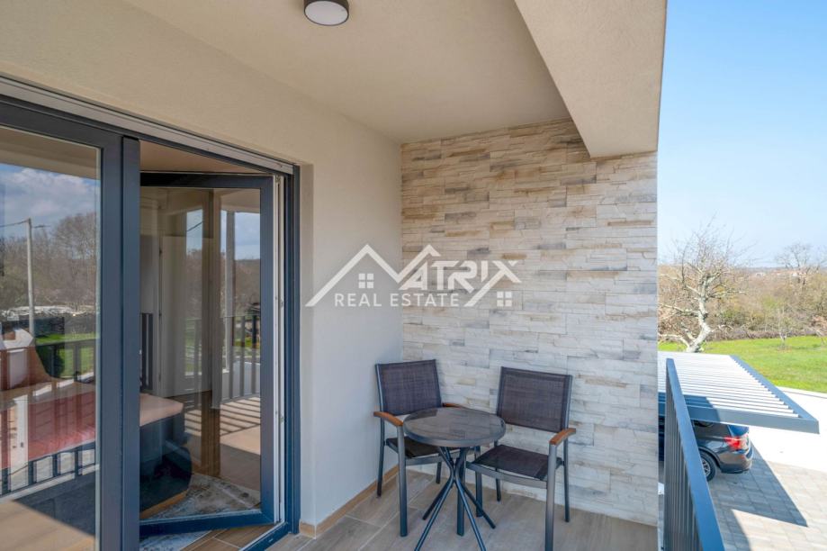 Na katu se nalaze tri lijepo uređene spavaće sobe, svaka s vlastitim kupatilom. Jedna od soba ima čak i vlastitu terasu, dok dvije sobe dijele prostranu terasu s prekrasnim pogledom.