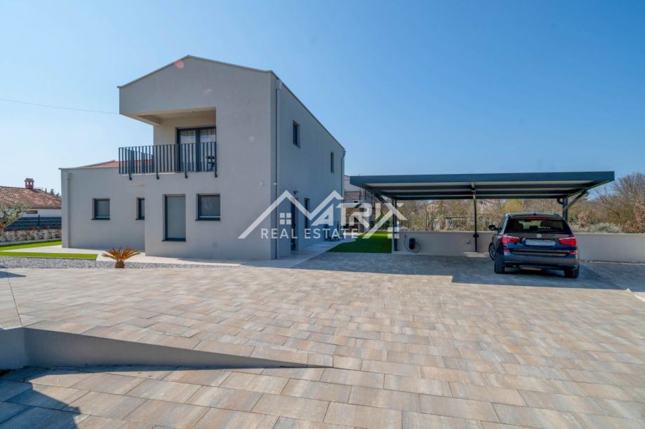 Predstavljamo vam ovu prekrasnu modernu vilu, savršenu kombinaciju elegancije i funkcionalnosti, smještenu na 792 m2 velikoj parceli, s ukupnom površinom kuće od 192 m2.