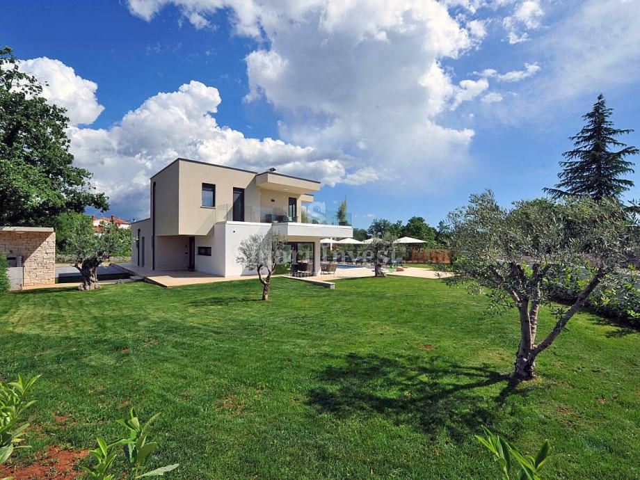 Na prodaju je atraktivna moderna vila s grijanim bazenom na lijepoj mirnoj lokaciji u malom istarskom selu nedaleko od Poreča.
