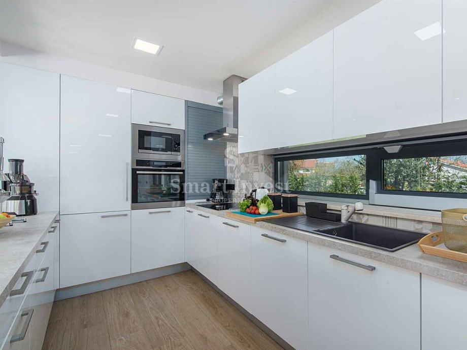 Unutrašnjost vile je moderno uređena i sve prostorije su kompletno opremljene. Grijanje/hlađanje kuće na dizalicu topline u kombinaciji podnog grijanja i fan coil sustava. Vila je opremljena video nadzorom i alarmom.