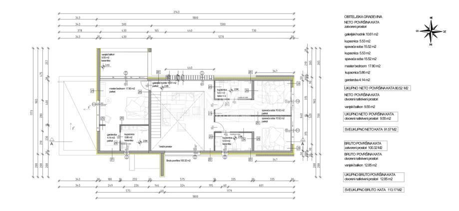 Na katu su smještene tri spavaće sobe svaka sa vlastitom kupaonicom te garderobom.