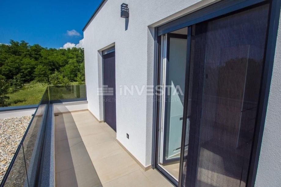 U okolici grada Poreča na prodaju je moderna vila posebnog dizajna površine 215 m2. Smiještena je na zemljištu od 766 m2 površine.