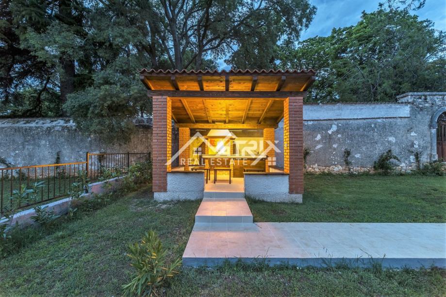 Centralni dio okućnice je prekrasan mali bazen s terasom za sunčanje, te se tu još nalazi natkrivena ljetna kuhinja s roštiljem. U sklopu okućnice nalazi se i natkriveni dio koji se koristi kao parking za najmanje jedno vozilo. Okućnica je potpuno ograđena, pružajući osjećaj privatnosti.