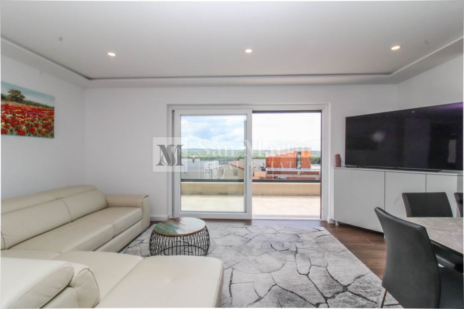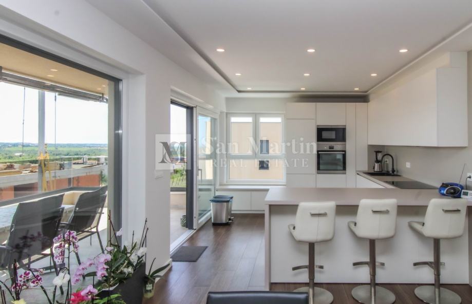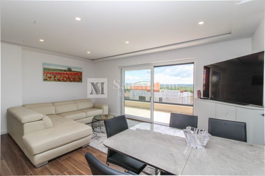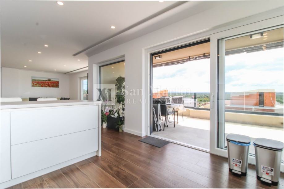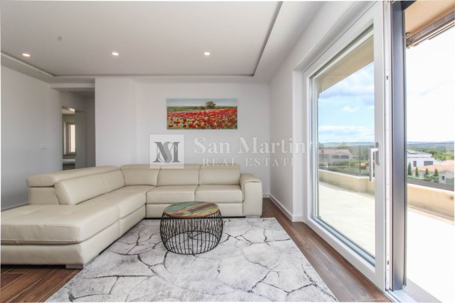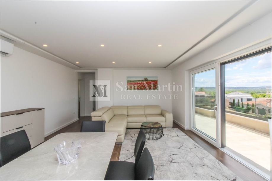 U bližoj okolici Poreča na samo par kilometara od mora na prodaju je prostrani, osunčani stan s prekrasnim pogledom na more i okolicu.