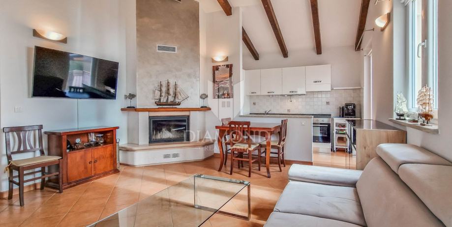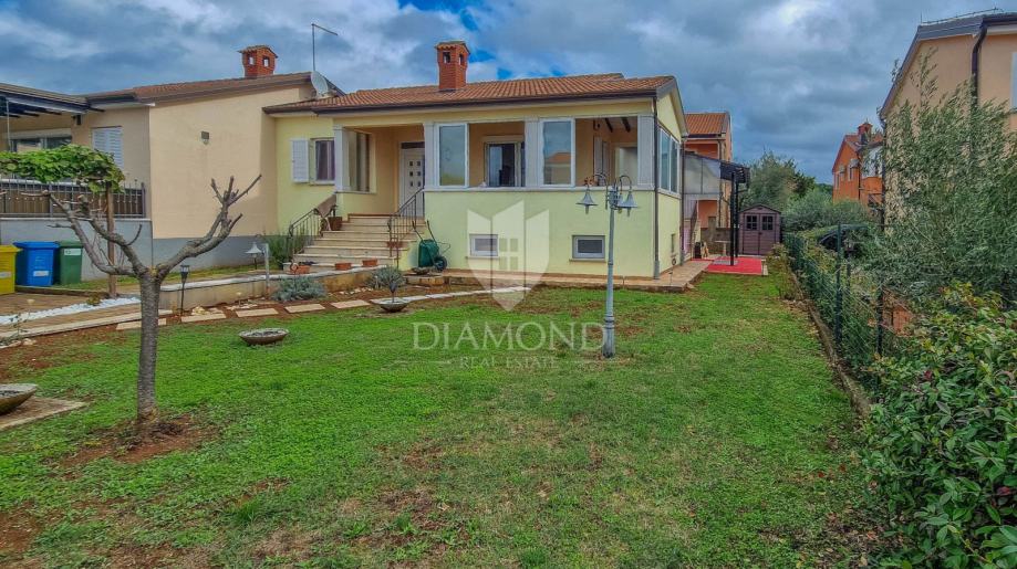 Prodaje se atraktivna dvojna kuća, visoka prizemnica u okolici Poreča sa pogledom na more. Kuća se sastoji od 2 spavaće sobe, 2 kupaonice i prostranog dnevnog boravka. Grijanje je osigurano klimom i centralnim grijanjem na drva. U suterenu se nalazi dodatna stambena jedinica - garsonjera s kuhinjom i kaminom, idealna za goste ili najam.