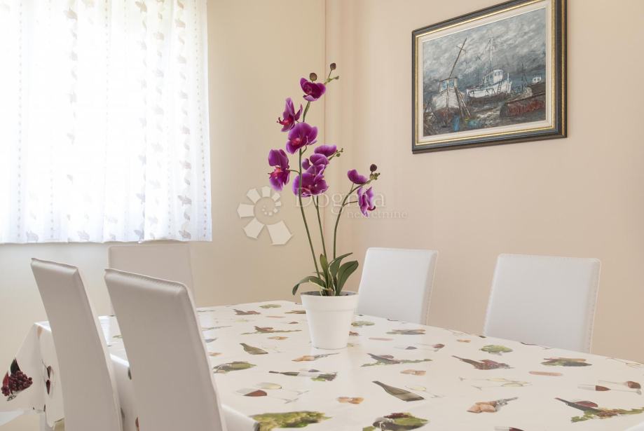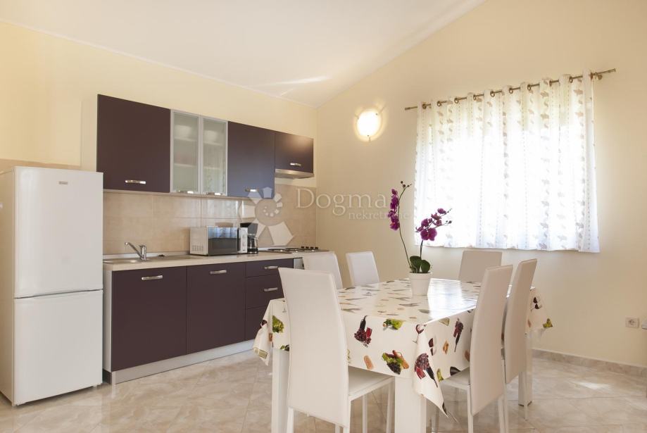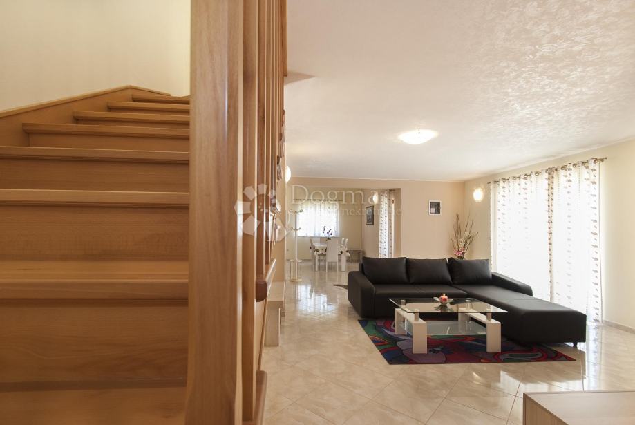 U prizemlju se prostire prostrani dnevni boravak s izlazom na terasu, koji je idealan za opuštanje i obiteljska druženja. Uz dnevni boravak smjestila se kuhinja, koja nudi funkcionalan prostor za pripremu obroka. Na istoj etaži, s lijeve strane, nalazi se ugodna spavaća soba te moderno opremljena kupaonica.
