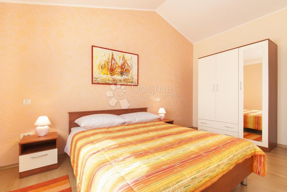 Na prvom katu nalaze se dvije spavaće sobe, a jedna od njih ima izlaz na balkon s očaravajućim pogledom na more. Ovdje se nalazi i druga, luksuzno uređena kupaonica.