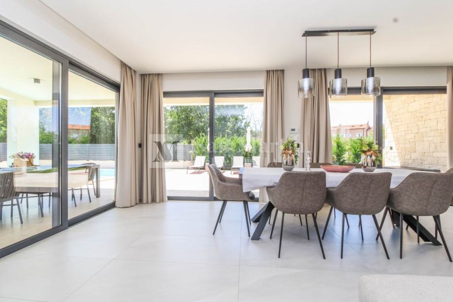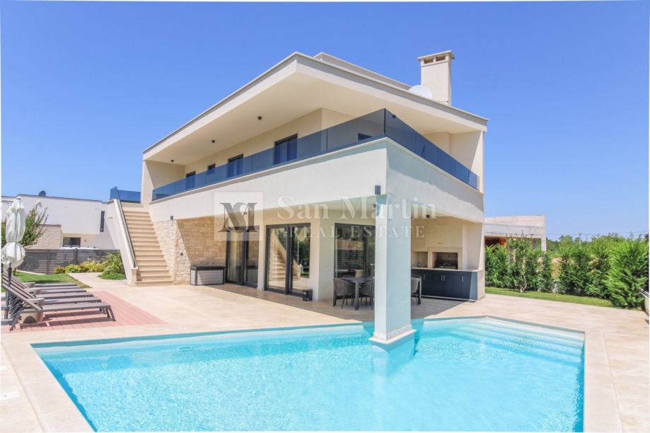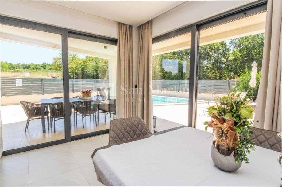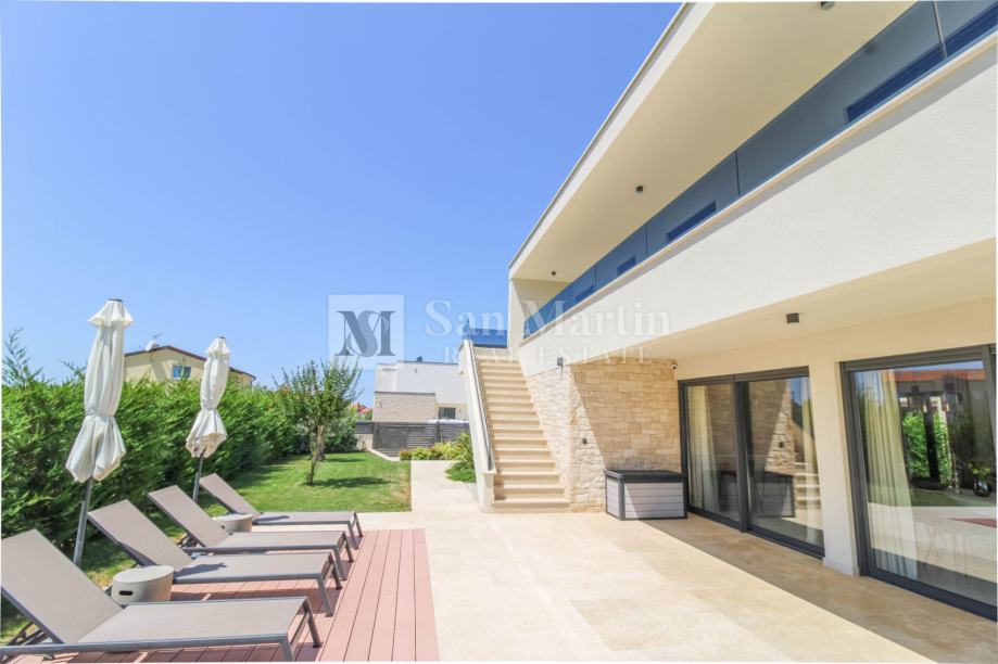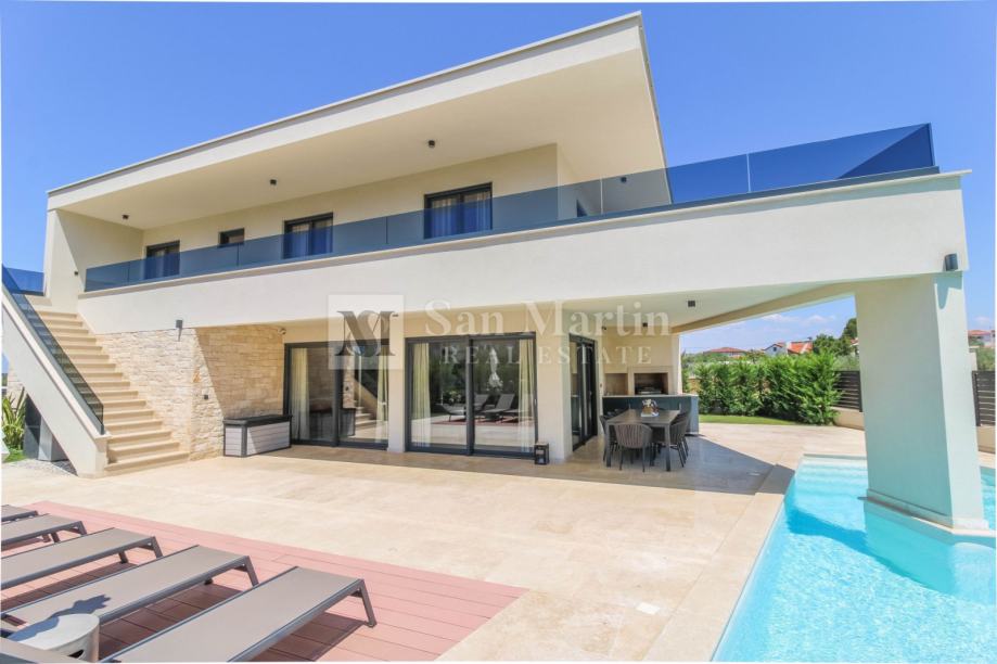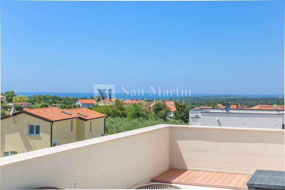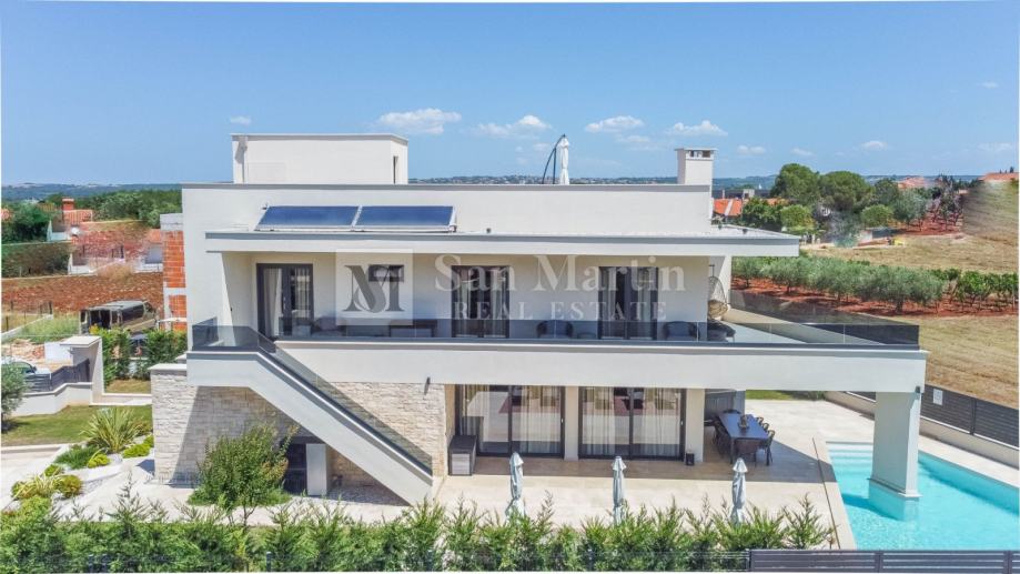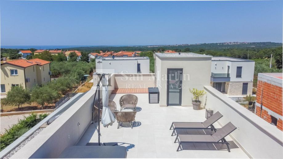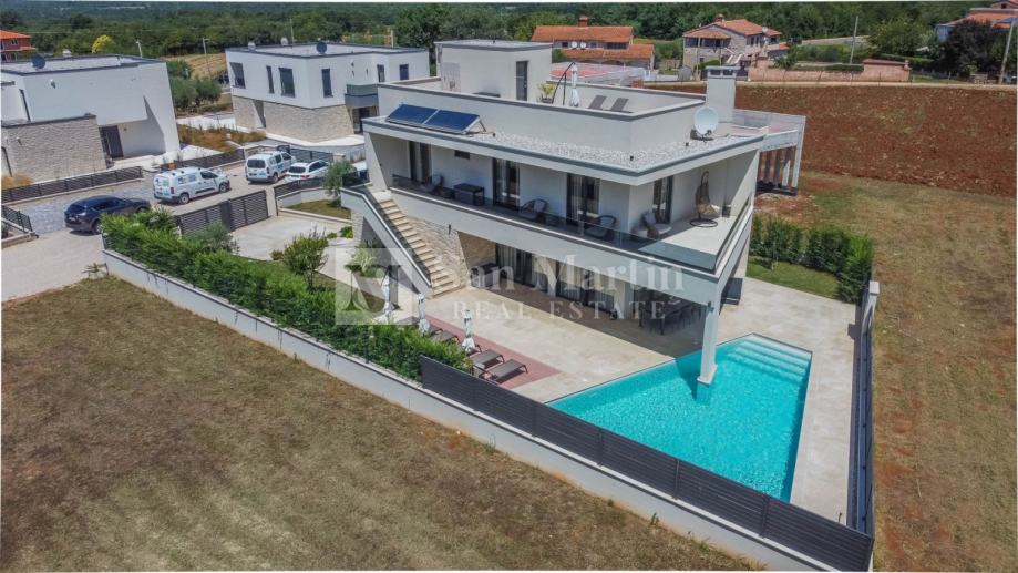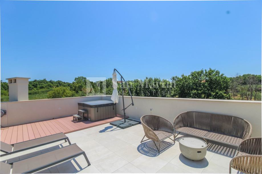 U mirnom mjestu, nedaleko grada Poreča i njegovih prvih plaža nalazi se ova samostojeća moderna kuća s bazenom. Nekretnina se prostire na dvije etaže, a ima i krovnu terasu s jacuzzijem i zonom za sunčanje s prekrasnim pogledom na more.