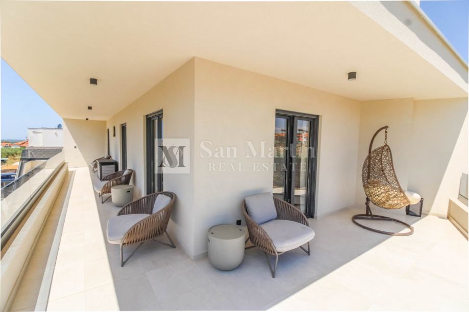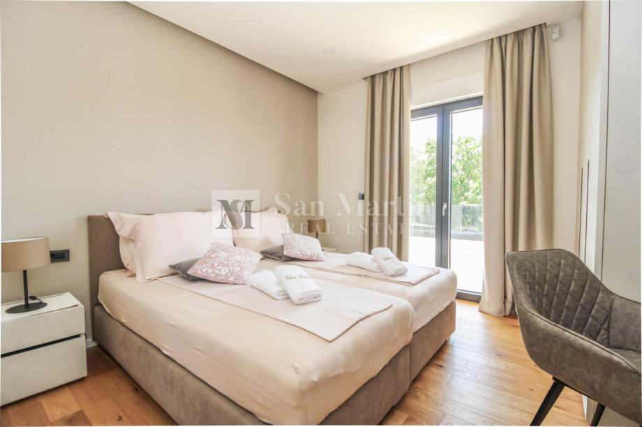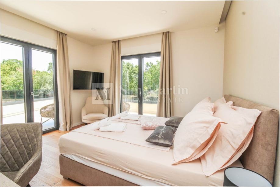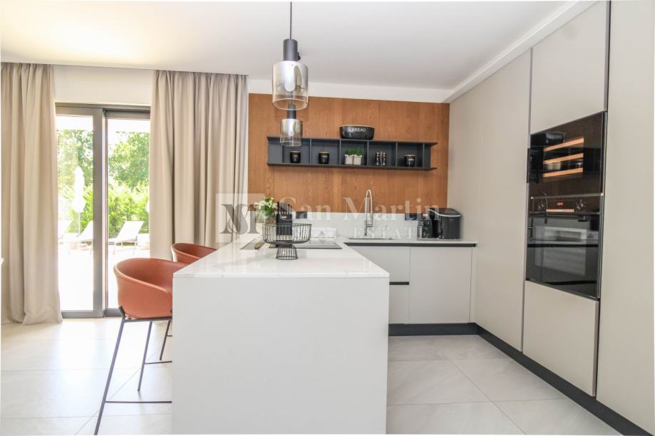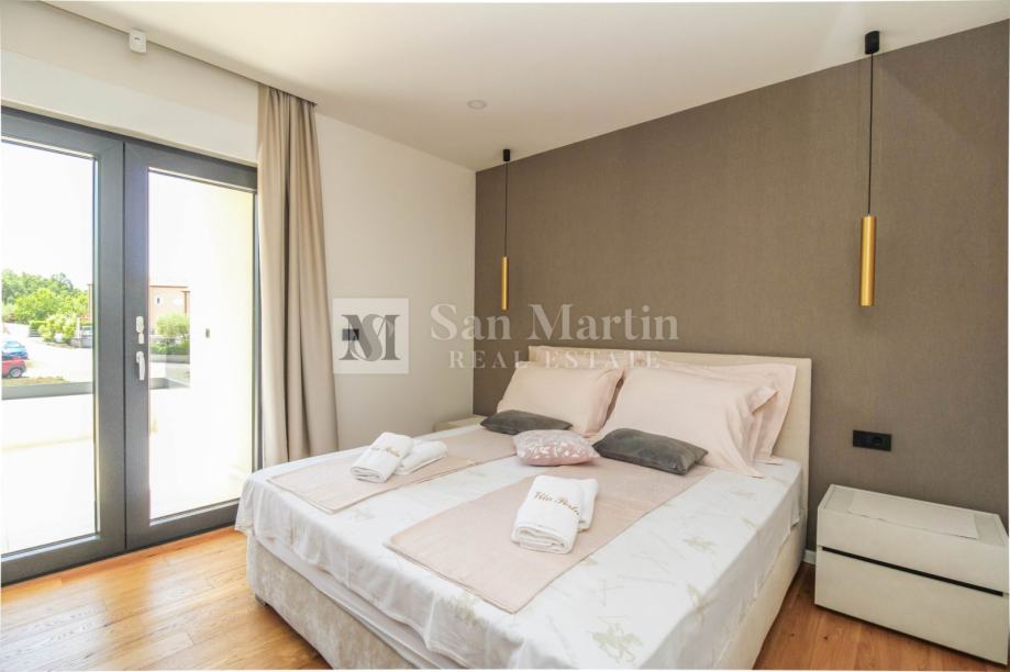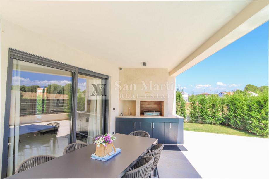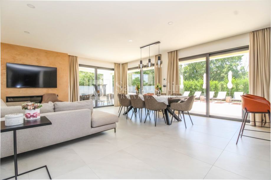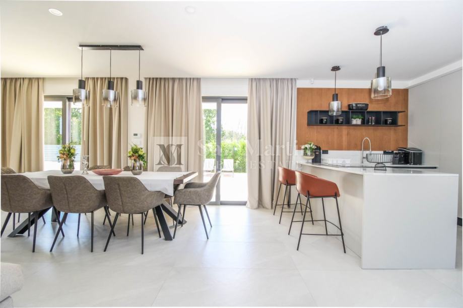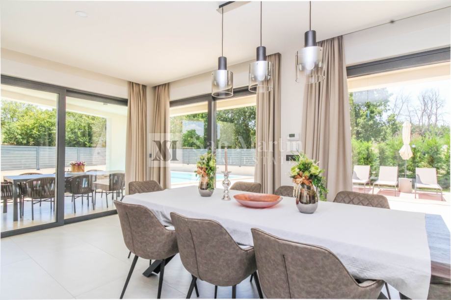 U mirnom mjestu, nedaleko grada Poreča i njegovih prvih plaža nalazi se ova samostojeća moderna kuća s bazenom. Nekretnina se prostire na dvije etaže, a ima i krovnu terasu s jacuzzijem i zonom za sunčanje s prekrasnim pogledom na more.