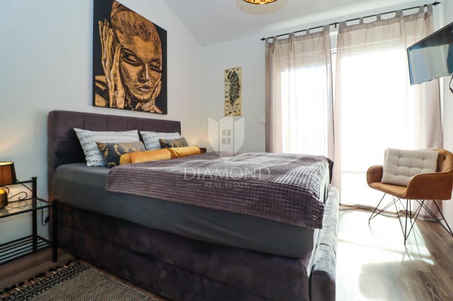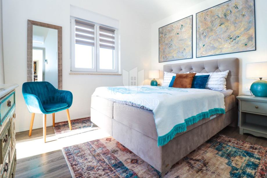 Kuća ima ukupno 4 prostrane spavaće sobe, svaka opremljena udobnim krevetima i dovoljno prostora za pohranu. Namještaj u sobama je pažljivo odabran kako bi stvorio ugodan i luksuzan ambijent. Iz spavaćih soba izlazi se direktno na terasu.