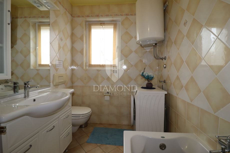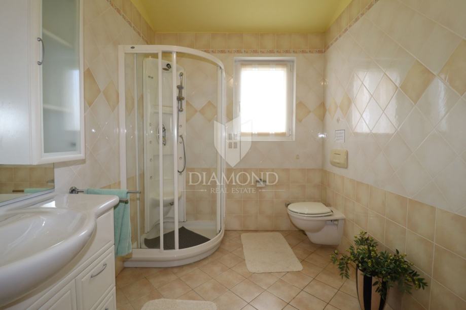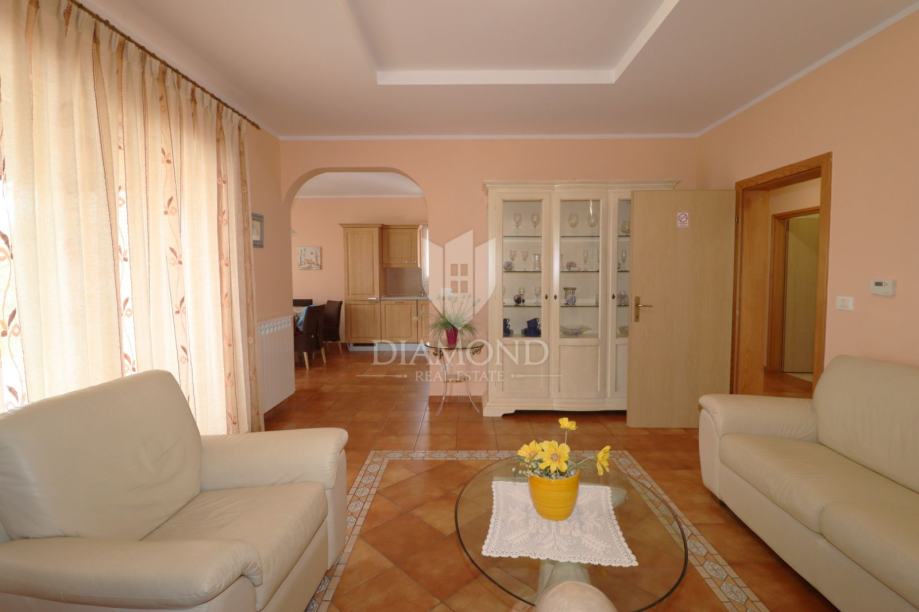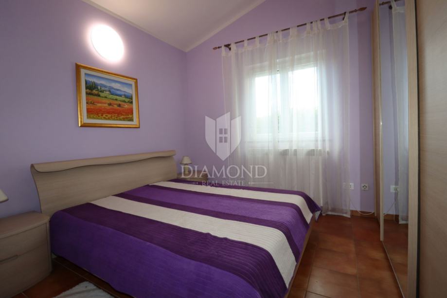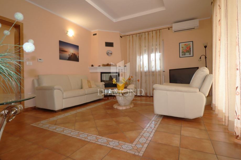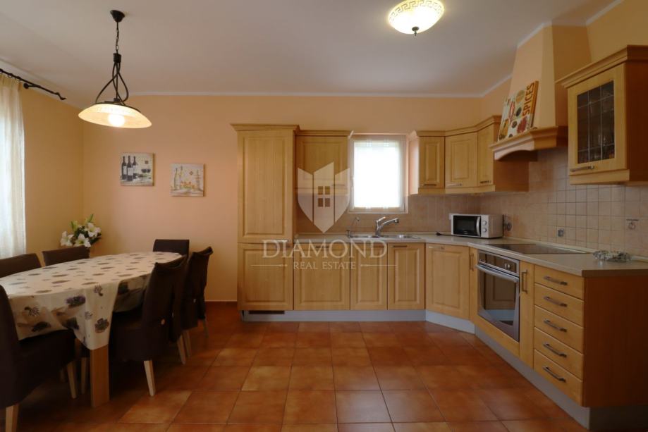 Na samo nekoliko minuta vožnje od Poreča, u mirnom okruženju udaljenom približno 8 km od mora i centra grada, smještena je šarmantna prizemnica s bazenom i garažom, ukupne površine 116 m². Izgrađena 2008. godine, kuća se nalazi na lijepo uređenoj i potpuno ograđenoj parceli površine 761 m² koja osigurava potpunu privatnost.