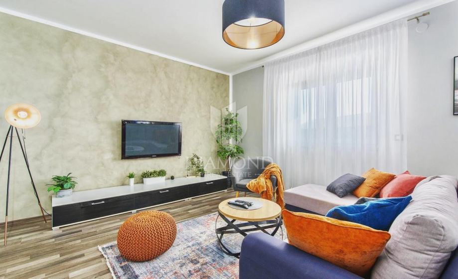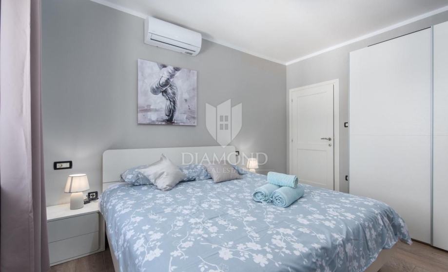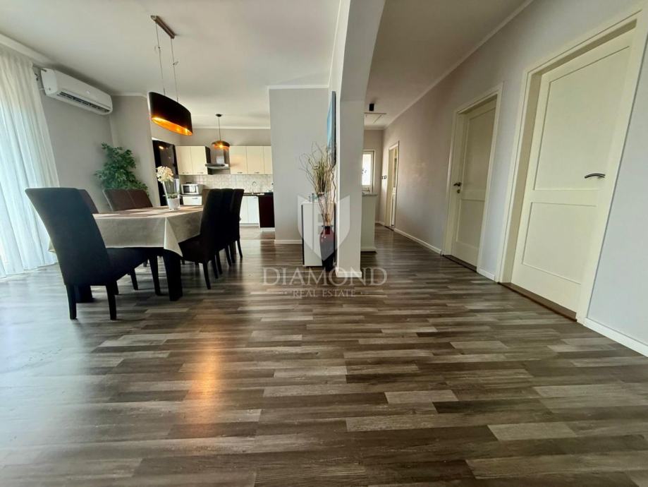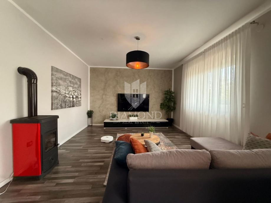 Nekretnina se prostire na jednoj etaži ukupne površine cca 130 m², dok okućnica iznosi 350 m². Kuća sadrži ukupno tri spavaćih soba, od kojih su tri opremljene Smart TV-om, prostrani dnevni boravak s blagovaonicom, moderno uređenu kuhinju, kupaonicu s walk-in tušem te dodatni WC. Glavna spavaća soba ima vlastiti balkon s pogledom na okućnicu i bazen.