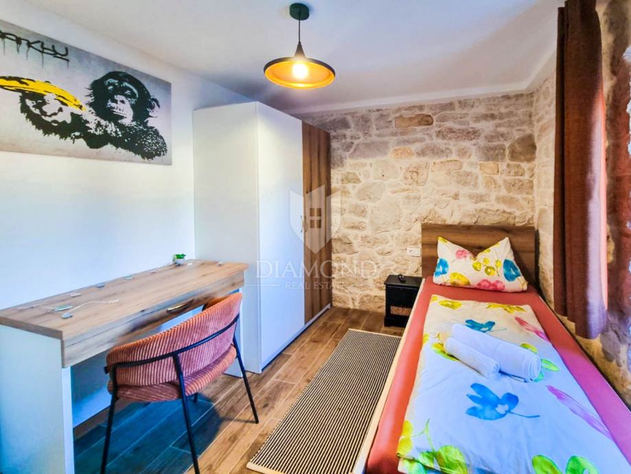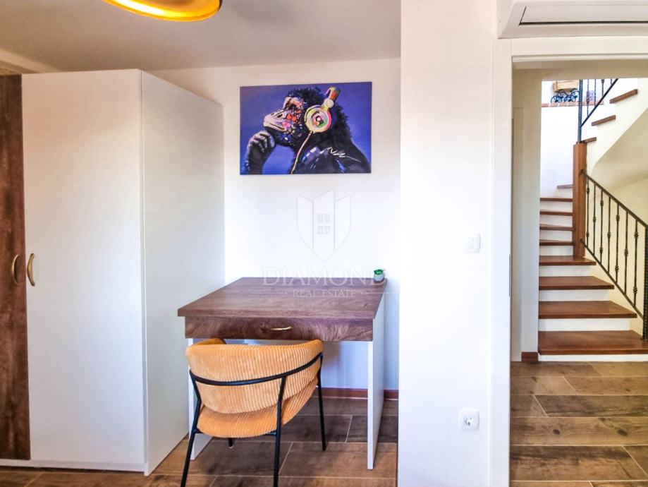Ova renovirana kamena istarska kuća u nizu pruža idealan spoj tradicije, luksuza i prekrasnog pogleda na more, čineći je savršenim domom ili vikendicom u prelijepoj okolici Poreča.