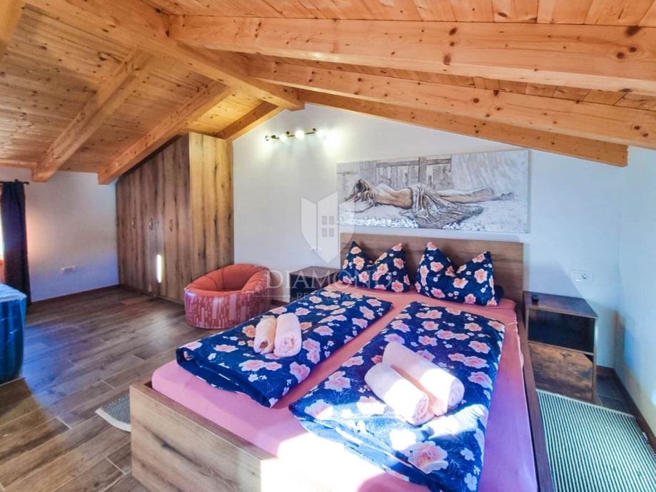Kuća ima ukupno tri prostrane spavaće sobe, svaka uređena s posebnim naglaskom na udobnost i estetiku. Dvije kupaonice su moderno uređene, a jedna od njih može biti povezana s glavnom spavaćom sobom.