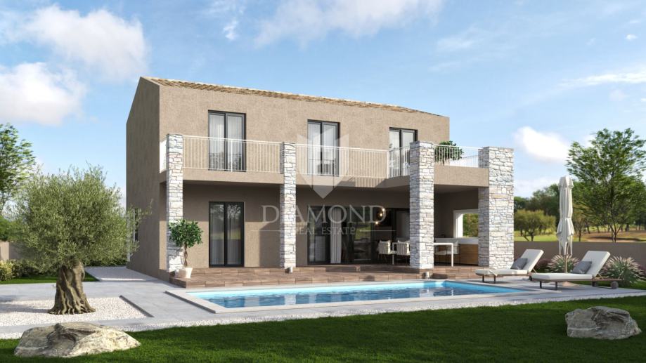 Poreč, okolica, fantastična vila s bazenom i pogledom na more u rohbau fazi.